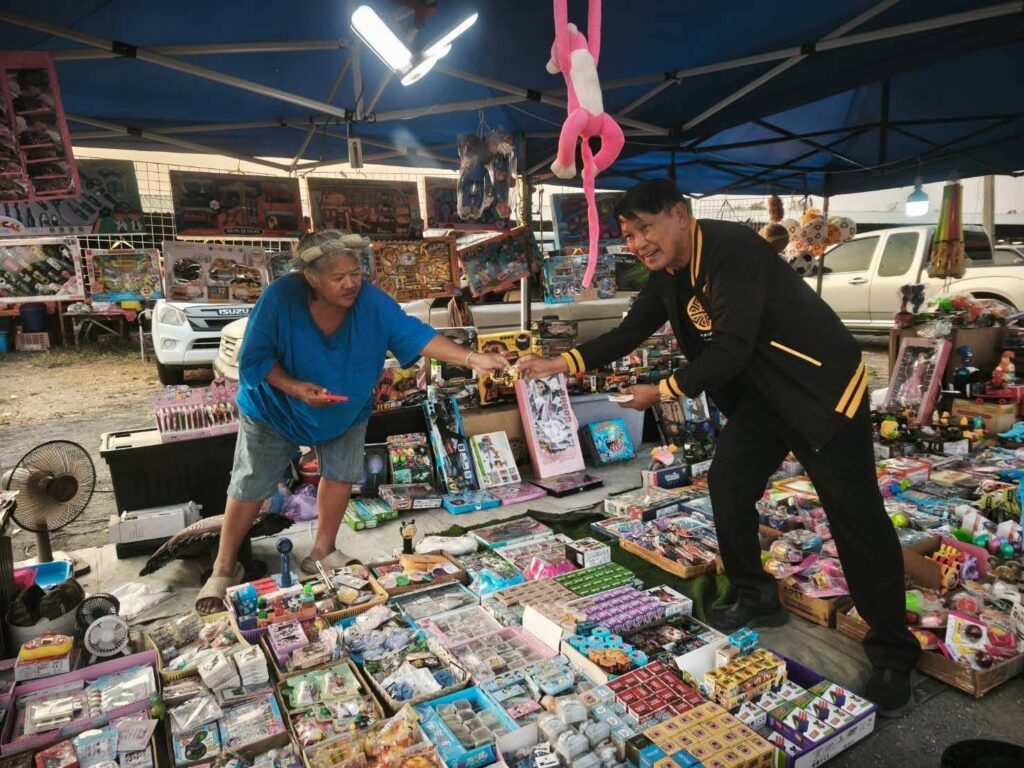 ลงพื้นที่ไปแจกแผ่นพับแนะนำตัวและเสนอนโยบาย ให้กับพ่อค้าแม่ค้า ประชาชนที่มาจับจ่ายซื้ออาหารในช่วงเย็น