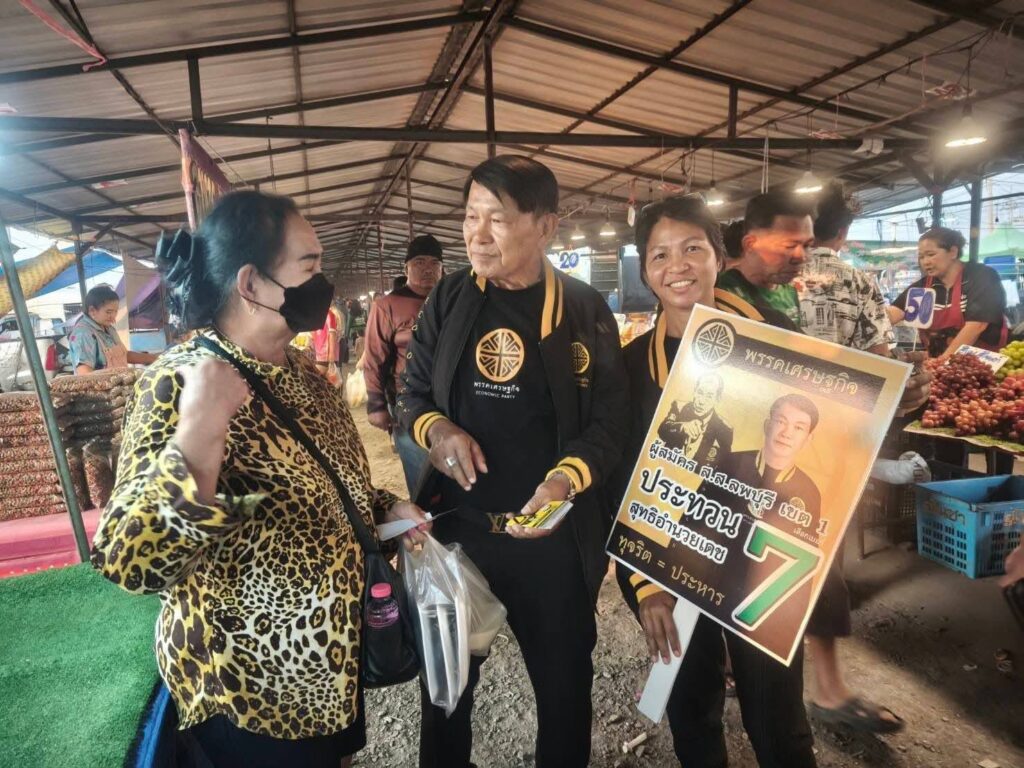 เพื่อลงพื้นที่หาเสียงกับพ่อค้าแม่ค้า และประชาชนที่มาจับจ่ายซื้ออาหาร