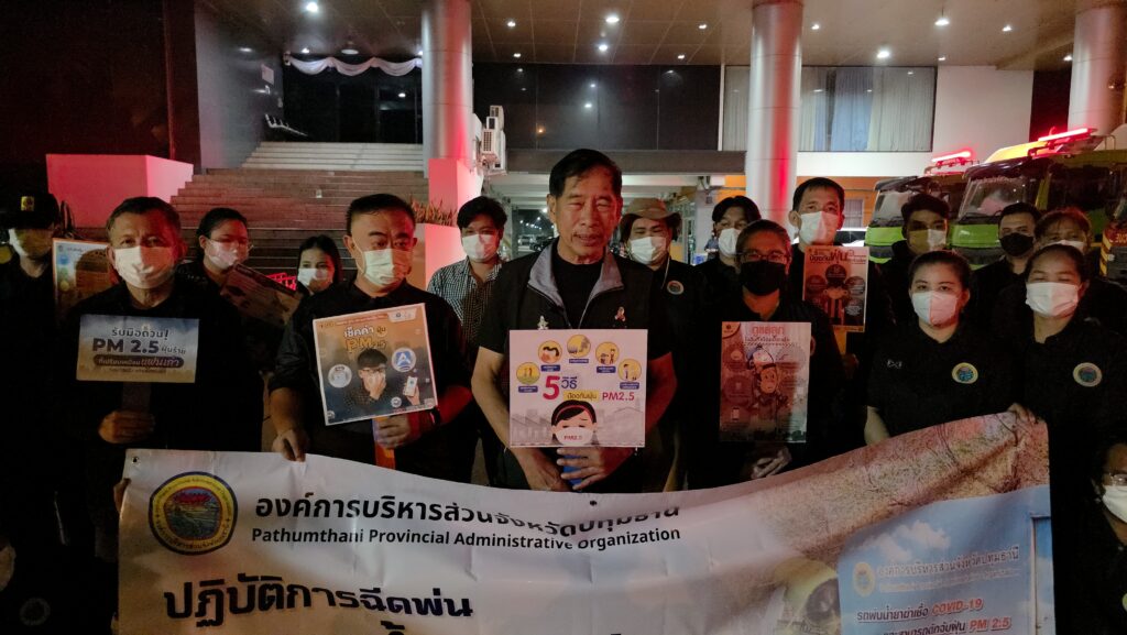เมื่อเวลา 04.00 น. วันที่ 22 มกราคม 2569 ที่ สำนักงานองค์การบริหารส่วนจังหวัดปทุมธานี พลตำรวจโท คำรณวิทย์ ธูปกระจ่าง นายกองค์การบริหารส่วนจังหวัดปทุมธานี นำทีมเจ้าหน้าที่ อบจ. ปล่อยแถวรณรงค์มาตรการป้องกันฝุ่นละอองขนาดเล็ก (PM 2.5) หลังพบว่าหลายพื้นที่ได้รับผลกระทบจากกลุ่มควันและฝุ่นละอองที่สะสมตัวหนาแน่น โดยหลายพื้นที่ที่ตรวจพบค่าฝุ่นพุ่งสูงเกินมาตรฐาน เกินระดับ 70 ไมโครกรัมต่อลูกบาศก์เมตร อำเภอคลองหลวง โดยเฉพาะบริเวณ ตำบลคลองหนึ่ง และพื้นที่รอบ มหาวิทยาลัยกรุงเทพ (วิทยาเขตรังสิต) ซึ่งมักพบค่าดัชนีคุณภาพอากาศ (AQI) พุ่งสูงในระดับสีส้มถึงสีแดงบ่อยครั้งในช่วงเช้า อำเภอเมืองปทุมธานี บริเวณพื้นที่เขตเทศบาลเมืองปทุมธานี และถนนสายหลักที่มีการจราจรหนาแน่น อำเภอธัญบุรีบริเวณ ตำบลรังสิต และย่าน ตลาดรังสิต ซึ่งเป็นจุดที่มีการระบายอากาศค่อนข้างน้อยและมีการก่อสร้างในบางจุด และ อำเภอลำลูกกา พื้นที่รอยต่อกรุงเทพฯ แถบคูคต และลำสามแก้ว ซึ่งได้รับอิทธิพลจากฝุ่นข้ามเขตพื้นที่