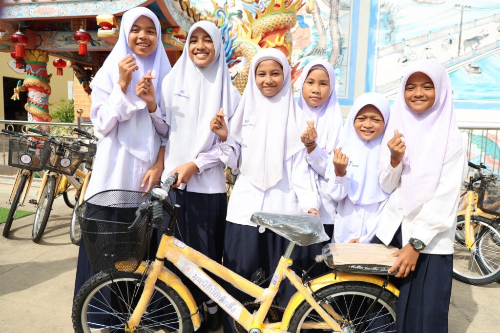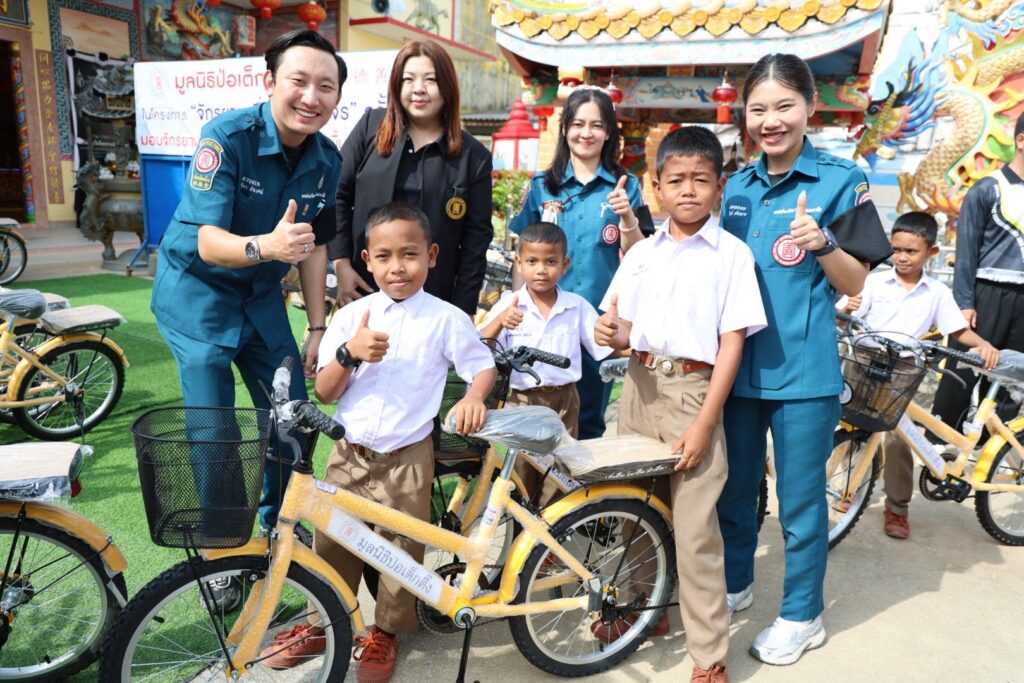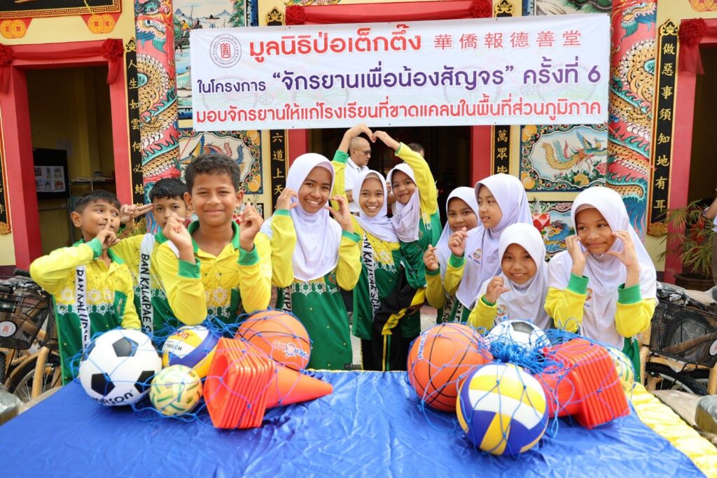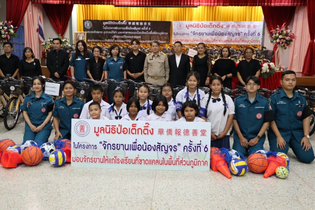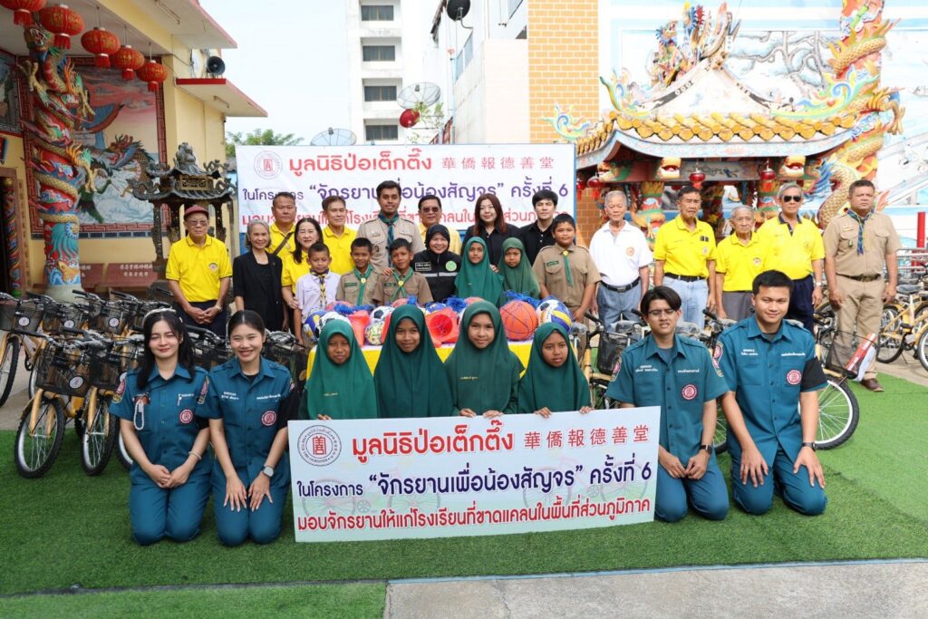 ระหว่างวันที่ 11 พฤศจิกายน 2568 – 22 มกราคม 2569 มูลนิธิป่อเต็กตึ๊ง โดย นายวิเชียร เตชะไพบูลย์ ห่วงใยนักเรียนในพื้นที่ชนบทภาคกลางและภาคใต้ มอบหมายให้ คณะกรรมการ และผู้ช่วยกรรมการมูลนิธิฯ นำโดย นายจารุรัตน์ คุณัตถานนท์ กรรมการและเหรัญญิก นายสุรพงศ์ เสรฐภักดี กรรมการและรองเหรัญญิก นายชาญกิจ วิทยาวรากรณ์ กรรมการ นายชูเดช เตชะไพบูลย์ ผู้ช่วยกรรมการ นำทีมฝ่ายสาธารณภัย และฝ่ายสังคมสงเคราะห์ ลงพื้นที่ภาคกลางและภาคใต้ มอบรถจักรยานพร้อมอุปกรณ์กีฬาและค่าพาหนะให้แก่โรงเรียนชนบทที่ขาดแคลนภาคกลางและภาคใต้ ในโครงการ “จักรยานเพื่อน้องสัญจร” ครั้งที่ 6 รวม 20 จังหวัด 100 โรงเรียน ประกอบด้วย จังหวัดพระนครศรีอยุธยา ลพบุรี ชัยนาท สุพรรณบุรี กาญจนบุรี สมุทรสงคราม ชลบุรี จันทบุรี ตราด สระแก้ว ชุมพร สุราษฎร์ธานี นครศรีธรรมราช พัทลุง ตรัง สตูล สงขลา ปัตตานี ยะลา และนราธิวาส รวมจำนวนจักรยาน 2,000 คัน อุปกรณ์กีฬา จำนวน 100 ชุด และค่าพาหนะแก่โรงเรียนๆ ละ 2,000 บาท รวมงบประมาณดำเนินการทั้งสิ้น 2,854,000 บาท (สองล้านแปดแสนห้าหมื่นสี่พันบาทถ้วน) เพื่ออำนวยความสะดวกแก่นักเรียนที่ประสบปัญหาในการเดินทางมาโรงเรียน รวมถึงเป็นการแบ่งเบาภาระค่าพาหนะแก่ผู้ปกครองได้อีกทางหนึ่ง อีกทั้งยังเสริมสร้างให้นักเรียนได้ออกกำลังกาย เรียนรู้กฎจราจร เรียนรู้การแบ่งปัน และดูแลรักษาสาธารณสมบัติร่วมกัน โดยมี ผู้แทนจากหน่วยงานรัฐเป็นประธานในพิธี พร้อมด้วยเยาวชนและผู้แทนจากสถาบันการศึกษา เป็นตัวแทนรับมอบ และสมาคม/มูลนิธิแต่ละจังหวัด เป็นผู้ประสานงานและร่วมในพิธี รวมถึง อาสาสมัครเฉพาะกิจ และอาสาศิลปินมูลนิธิป่อเต็กตึ๊ง นำโดย นายนเรศ วิทยาวรากรณ์ นายวิวัฒน์ แก้วกำพลกุล และนายวาทิต อิทธิฤทธิ์โสภา (วินน์) ร่วมลงพื้นที่มอบ