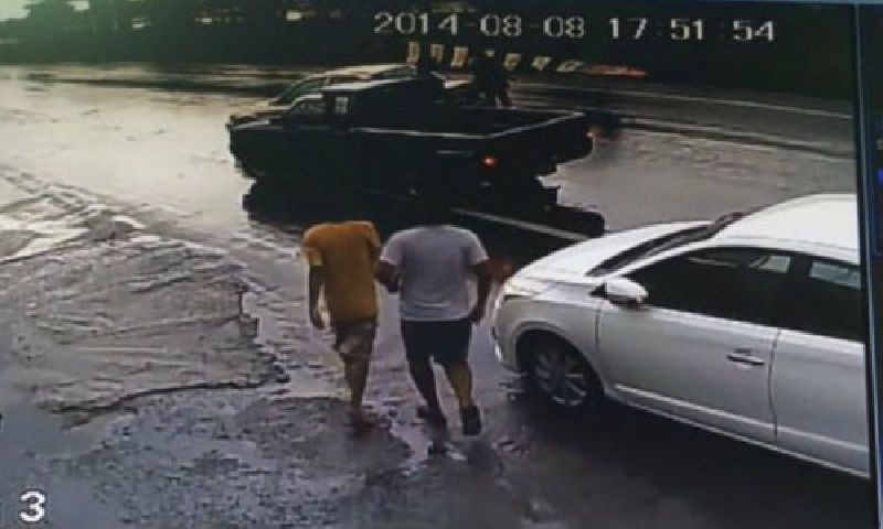 ที่กลุ่มชายฉกรรจ์ขับรถเก๋งปาดหน้ารถกระบะแล้วอุ้มคนขับรถกระบะขึ้นรถเก๋งขับหายไป