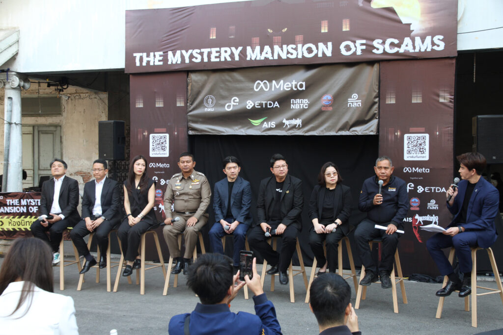 ผนึกกำลังร่วมกับภาครัฐ 6 หน่วยงาน เปิดตัวกิจกรรมอินเทอร์แอคทีฟสุดอิมเมอร์ซีฟ “The Mystery Mansion of Scams: คฤหาสน์หลอน เปิดโปงโลกสแกม” โดยมีคุณยิ่งยศ ลีชัยอนันต์ หัวหน้าฝ่ายนโยบายสาธารณะ Facebook ประเทศไทย พร้อมด้วย นายศานนท์ หวังสร้างบุญ รองผู้ว่าฯ กทม., พล.ต.ต. ธีรเดช ธรรมสุธีร์ รองผบช.น., นายศรัณย์ ทองคำ นักวิชาการคอมพิวเตอร์ชำนาญการพิเศษ สำนักงานปลัดกระทรวงดิจิทัลเพื่อเศรษฐกิจและสังคม, คุณมีธรรม ณ ระนอง รองผู้อำนวยการสำนักงานพัฒนาธุรกรรมทางอิเล็กทรอนิกส์, คุณอนันติยา กิตติพรหมวงศ์ ผู้อำนวยการส่วน สำนักกำกับดูแลกิจการโทรคมนาคม สำนักงานคณะกรรมการกิจการกระจายเสียง กิจการโทรทัศน์ และกิจการโทรคมนาคมแห่งชาติ (กสทช.) , คุณอาชินี ปัทมะสุคนธ์ ผู้ช่วยเลขาธิการสายสื่อสารองค์กร สำนักงานคณะกรรมการกำกับหลักทรัพย์และตลาดหลักทรัพย์, พล.ต.ต.โชติวัฒน์ เหลืองวิลัย ผบก.สส.บช.น., คุณแพร Country Director, Facebook ประเทศไทย, คุณสุดาพร วัชรนิศากร หัวหน้าส่วนงานประชาสัมพันธ์และสื่อสารองค์กร AIS, พ.ต.ต.ธัญพิสิษฐ์ จุลพิภพ หรือสารวัตรแจ๊ะ สว.กก.3 บก.สส.บช.น. และคุณเอกวรัญญู อัมระปาล โฆษก กทม. เข้าร่วมงาน ณ การประปาแม้นศรี (หลังเก่า) แขวงบ้านบาตร เขตป้อมปราบศัตรูพ่าย กทม. เพื่อสร้างความตระหนักรู้และปราบปรามอาชญากรรมออนไลน์ หลังดำเนินมาตรการเชิงรุกกำจัดเนื้อหาและบัญชีละเมิดนโยบายจำนวนมากในช่วงปี 2567 ถึงครึ่งแรกของปี 2568