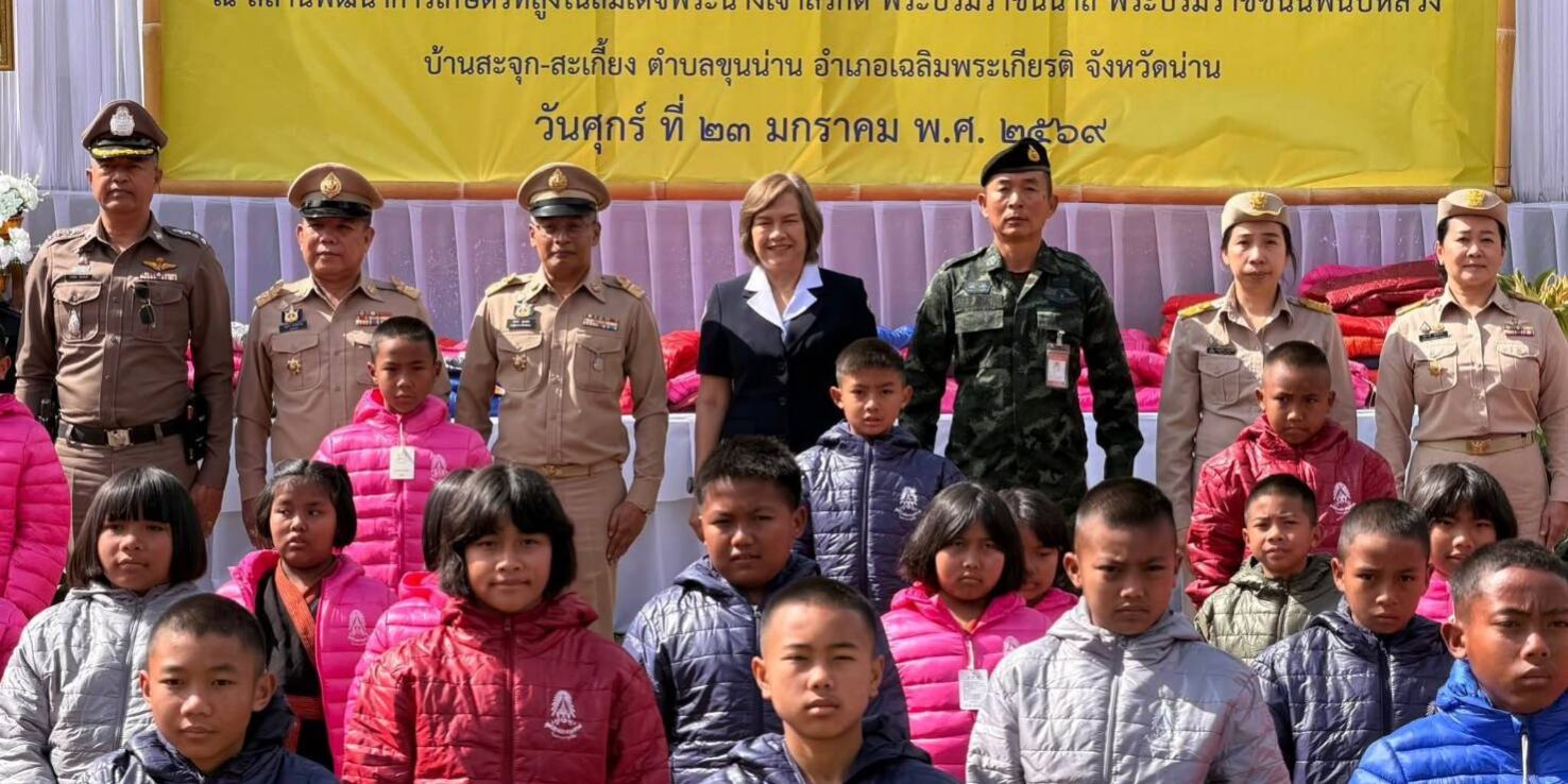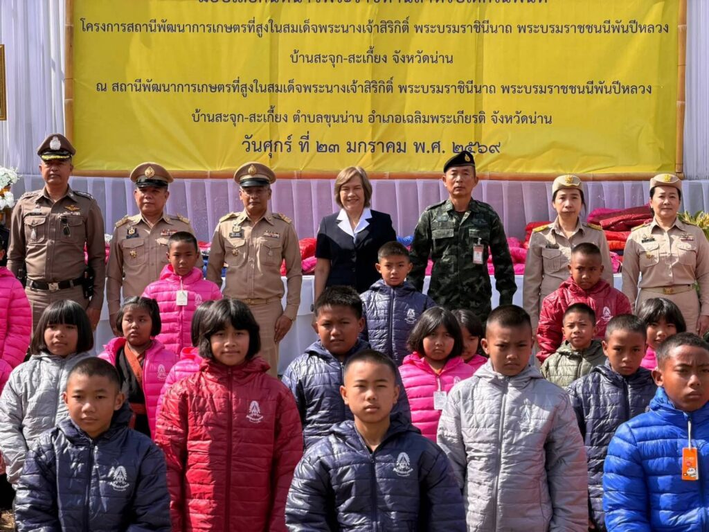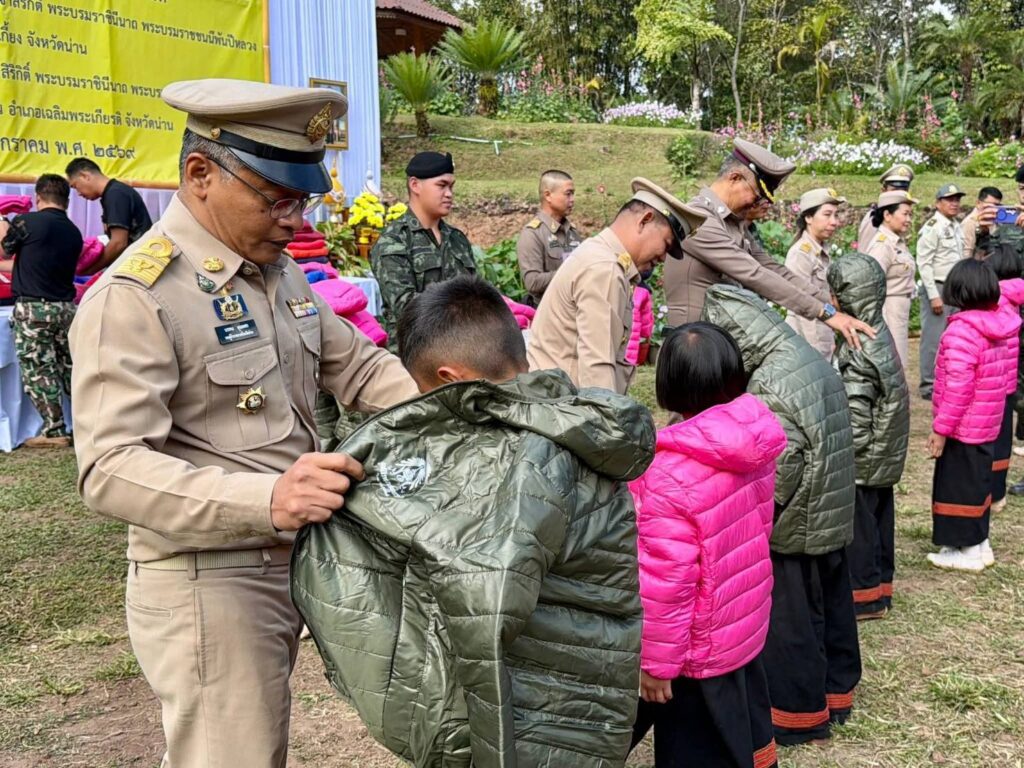 น่าน – เมื่อวันที่ 23 มกราคม 2569 เวลา 10.30 น. นายชัยนรงค์ วงศ์ใหญ่ ผู้ว่าราชการจังหวัดน่าน มอบหมายให้นายบรรจง ขุนเพชร รองผู้ว่าราชการจังหวัดน่าน เป็นประธานในพิธีมอบเสื้อกันหนาวพระราชทานแก่เด็กนักเรียนในพื้นที่โครงการสถานีพัฒนาการเกษตรที่สูง ในสมเด็จพระนางเจ้าสิริกิติ์ พระบรมราชินีนาถ พระบรมราชชนนีพันปีหลวง ณ บ้านสะจุก–สะเกี้ยง ตำบลขุนน่าน อำเภอเฉลิมพระเกียรติ จังหวัดน่าน