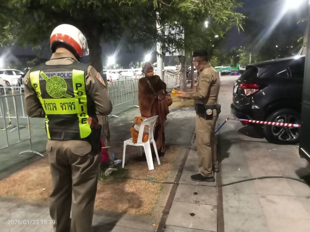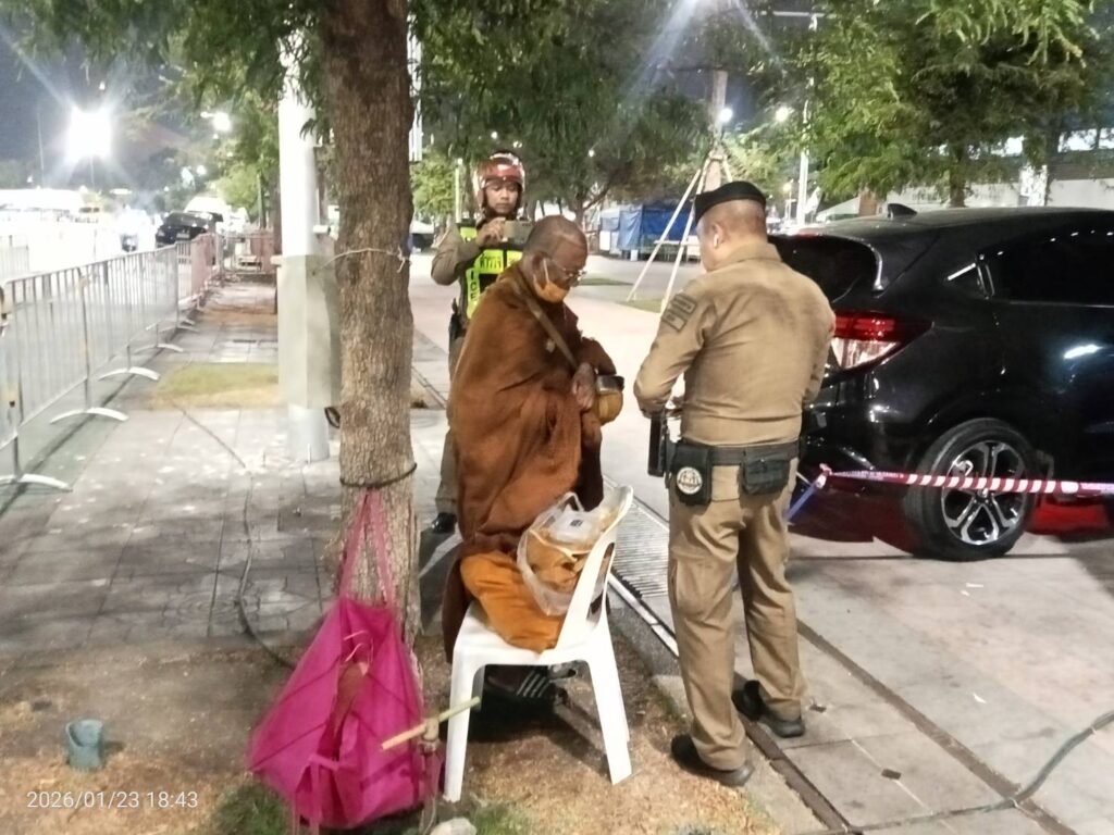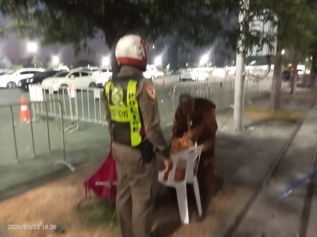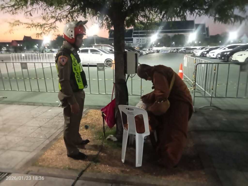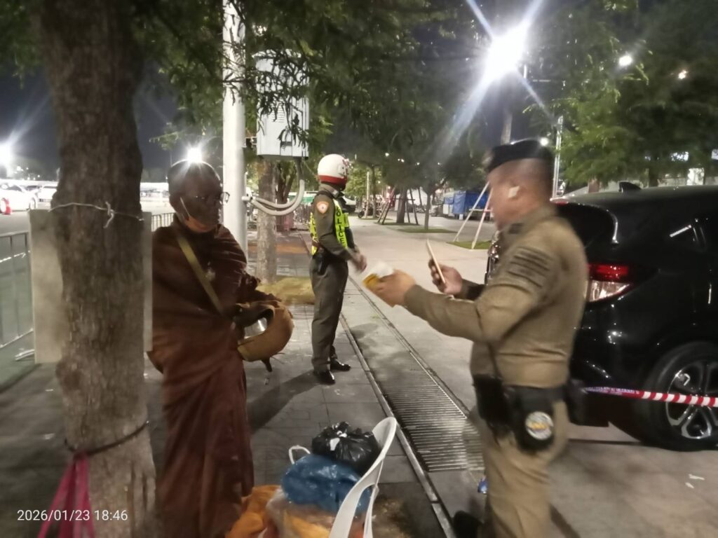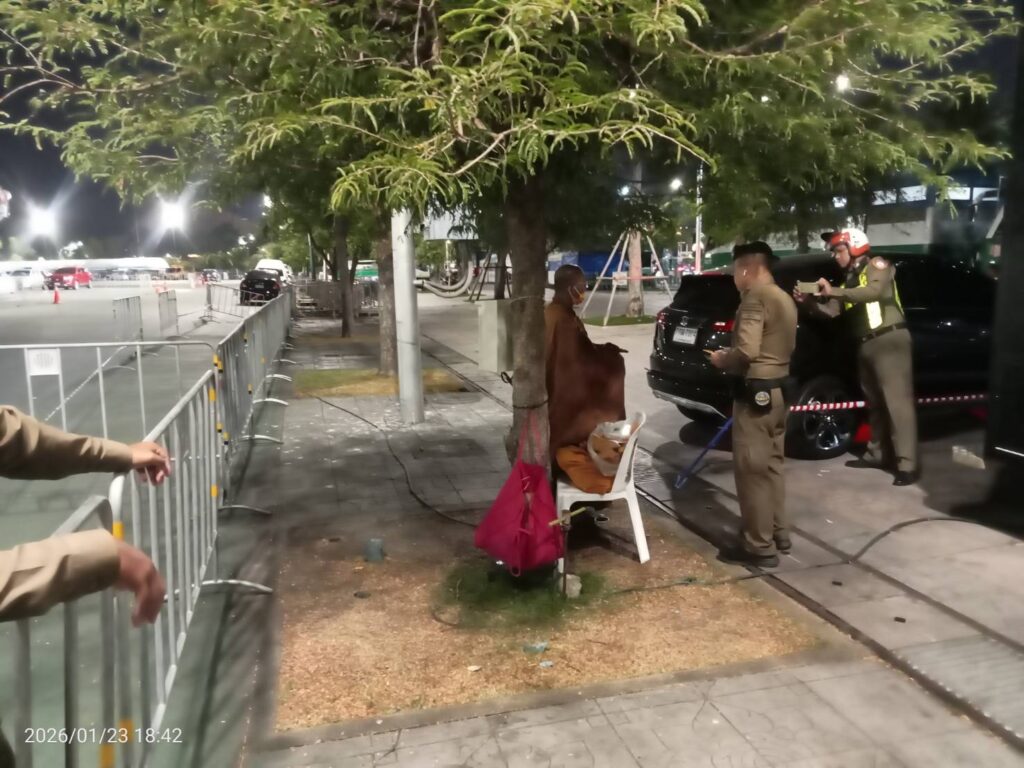 วันนี้ 23ม.ค.69 เวลา 18:36 น. #เทศกิจกรุงเทพมหานคร พร้อม #ตำรวจชนะสงคราม และ ตำรวจจราจรกลาง ว.4 ตรวจสอบพระสงฆ์ มีพฤติการณ์ต้องให้สงสัย #ว่ามีใบสุทธิเป็นพระสงฆ์ จริงหรือไม่ บริเวณในงานพระบรมศพฯ ท้องสนามหลวง เขตพระนคร กทม.