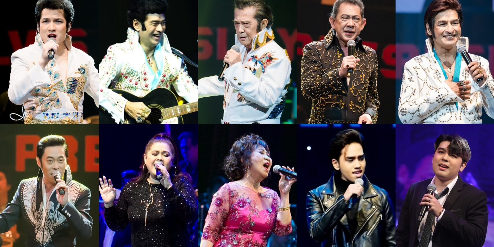 จีระศักดิ์ ปิ่นสุวรรณ เอลวิสรุ่นใหญ่ของเมืองไทยนำทีมเอลวิสคุณภาพ วสุ แสงสิงแก้ว เล็ก เพรสลีย์ อาเธอร์ ฮูเซ็น ศตวรรษ ตุงคะรัต วิชญ ผาติหัตถกร ร่วมด้วย ผุสดี เอื้อเฟื้อ นนทิยา จิวบางป่า และเอลวิสรุ่นใหม่แชมป์จากเวทีเพลงสากล ยุค “โก๋หลังวัง” ชลธาร เซ็นเชาวนิช(บาร็อก) ณัฐภัท กปิลกาญจน์(เฟิร์ส) ถ่ายทอดเพลงรักยอดนิยมของเอลวิสที่โด่งดังและโรแมนติกมาจนถึงปัจจุบัน และเพลงซึ้งๆ จากเพลย์ลิสต์สุดคลาสสิกอีกมากมาย ที่บอกเล่าเรื่องราวความรักหลากหลาย เลือกสรรกันมาถ่ายทอดให้ฟังกันอย่างเต็มอิ่ม บรรเลงโดยวง วง BIG BAND เฉลิมราชย์ ควบคุมวงโดย อ.วิรัช อยู่ถาวร(ศิลปินแห่งชาติ) พิธีกร โกมุท คงเทศ
