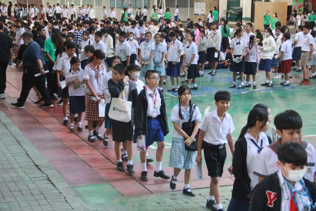 ปีนี้ได้มีนักเรียนเข้าสอบแข่งขันคึกคัก มีรุ่นพี่ร่วมให้กำลังใจ น้องๆ