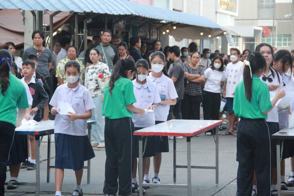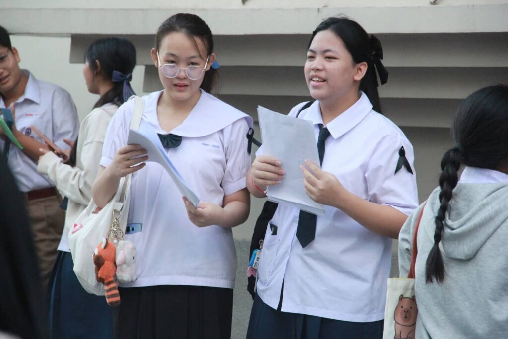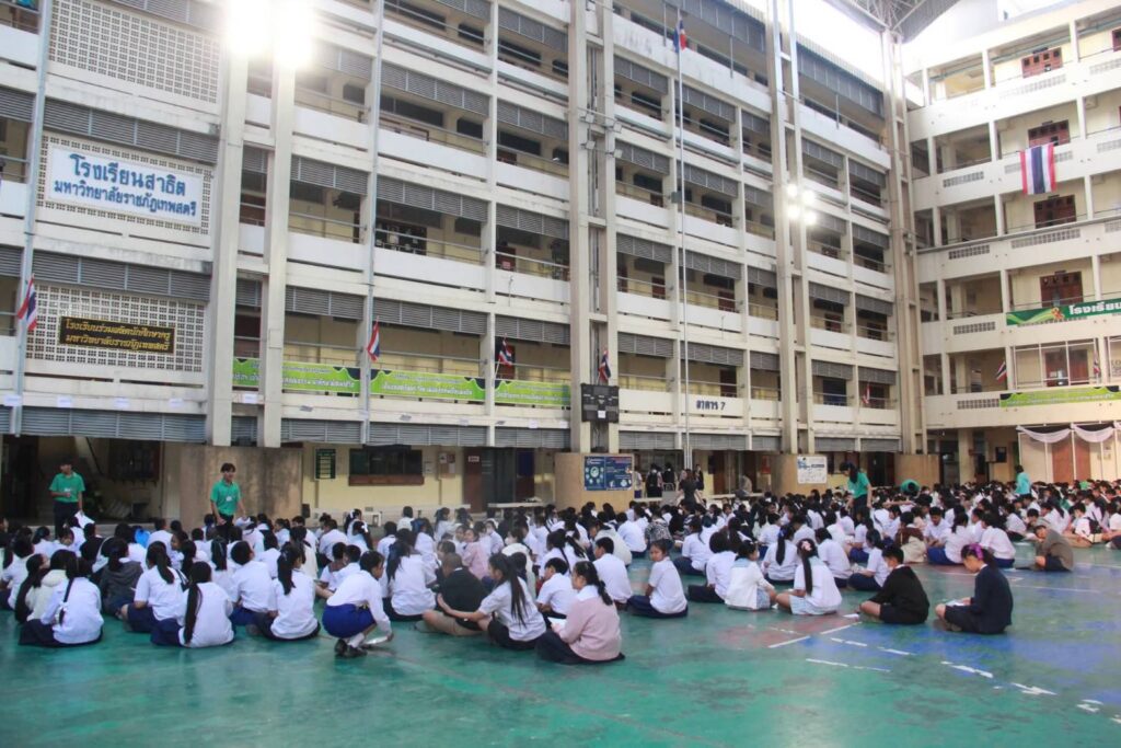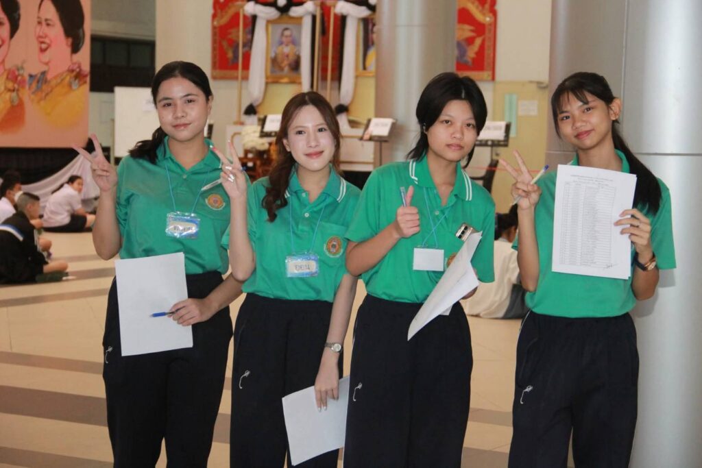 ณ สนามสอบ บริเวณอาคารเรียนโรงเรียนสาธิตมหาวิทยาลัยราชภัฏเทพสตรี