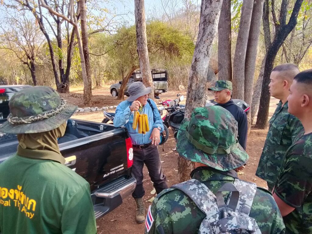 และอีกตัวอย่างหนึ่งของฝายมีชีวิต โดยมีวิทยากรครูฝาย วิทยากรกิตติมศักดิ์ พลโท เยี่ยมชัย บุตรดาวงษ์ อดีตที่ปรึกษากองกำลังสุรสีห์ เตรียมการฝึกการสร้างฝายให้กับนักศึกษาวิชาทหารชั้นปี 5 ในการฝึกภาคสนามประจำปี 2568 เพื่อกำหนดจุดสร้างฝายโดยรอบเขาชนไก่ สอนการสร้างฝายอย่างถูกหลักถูกวิธี สร้างฝายให้เกิดเป็นระบบฝาย อย่าสร้างฝายตรงทางโค้งน้ำ อย่าสร้างฝายด้วยกระสอบทรายเด็ดขาด น้ำในห้วยช่วยกันทำตลอดสาย ด้วยฝายในหลวง