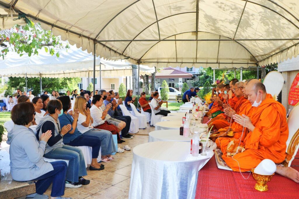 โดยในช่วงเช้า เวลา 08.09 น. คณะกรรมการชุมชนและประชาชนในพื้นที่ ได้ร่วมกันประกอบพิธี สักการะท้าวมหาพรหม ณ บริเวณหน้าหมู่บ้าน เพื่อความเป็นสิริมงคลและความร่มเย็นเป็นสุข ก่อนจะเข้าสู่พิธีสงฆ์ในเวลา 10.00 น. ซึ่งได้นิมนต์ พระสงฆ์จากวัดโพสพผลเจริญ จำนวน 9 รูป มาประกอบพิธีเจริญพระพุทธมนต์ อุทิศส่วนกุศล และประพรมน้ำพระพุทธมนต์แก่ผู้เข้าร่วมพิธี สร้างขวัญกำลังใจและความเป็นสิริมงคลแก่ชุมชนโดยทั่วหน้าภายในงานยังได้มีการประกอบพิธี ถวายภัตตาหารเพล อาหารคาวหวาน พร้อมทั้งเครื่องสังฆทาน แด่พระสงฆ์จากวัดโพสพผลเจริญทั้ง 9 รูป โดยคณะกรรมการชุมชนและประชาชนในพื้นที่ได้ร่วมกันจัดเตรียมสิ่งของด้วยความเลื่อมใสศรัทธา เพื่อถวายเป็นพุทธบูชาและอุทิศส่วนกุศล เสริมสร้างความเป็นสิริมงคลแก่ผู้อยู่อาศัยและชุมชน ภายหลังเสร็จสิ้นพิธีสงฆ์ ประชาชนได้ร่วมกันรับประทานอาหาร พร้อมทั้งพบปะพูดคุยแลกเปลี่ยนความคิดเห็น ท่ามกลางบรรยากาศแห่งความเอื้ออาทร สะท้อนถึงความสัมพันธ์อันดีและความเข้มแข็งของชุมชนหมู่บ้านแหวนยอด 3