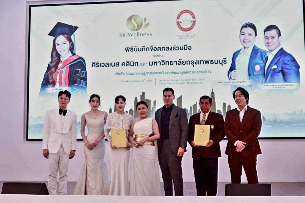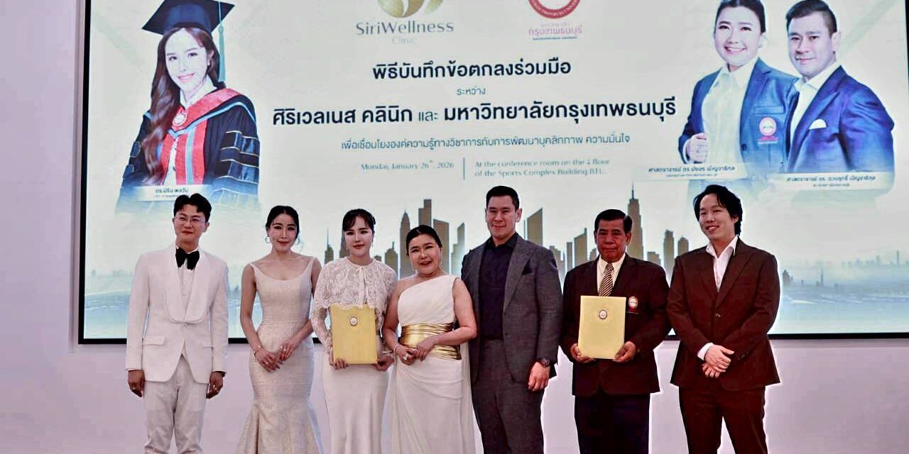 เมื่อวันที่ 26 ม.ค. 69 มหาวิทยาลัยกรุงเทพธนบุรี (BTU) ร่วมกับ ศิริเวลเนส คลินิก(SiriWellness Clinic) จัดพิธีลงนามบันทึกข้อตกลงความร่วมมือ (MOU) ทางวิชาการ เพื่อส่งเสริมการพัฒนาทรัพยากรมนุษย์ในยุคใหม่อย่างรอบด้าน ทั้งด้านองค์ความรู้ ความสามารถทางวิชาการ บุคลิกภาพ ความมั่นใจ และความสุข อันเป็นรากฐานสำคัญสู่ความสำเร็จในอนาคต