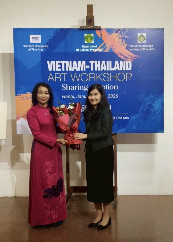 - การจัดนิทรรศการ “Vietnam-Thailand Art Workshop Sharing Emotion” ณ Vietnam University of Fine Arts (VUFA) ภายในงานได้รวบรวมผลงานที่เกิดจากกระบวนการ Workshop ร่วมกันของศิลปินทั้งสองประเทศ นำมาจัดแสดงนิทรรศการ สะท้อนพลังของศิลปะในฐานะที่สามารถเชื่อมโยงมิตรภาพ ความเข้าใจ และความร่วมมือระหว่างกัน พร้อมเยี่ยมชมแกลอรี่ที่แสดงผลงานภาพจิตรกรรมของอดีตอธิการบดี Vietnam University of Fine Arts (VUFA)