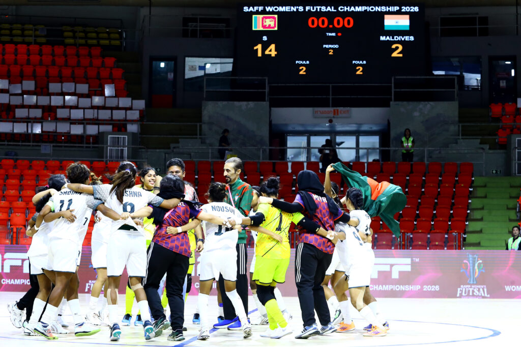 เมื่อวันที่ 25 มกราคม 2026 : ปิดฉากลงอย่างยิ่งใหญ่สำหรับการแข่งขัน SAFF Women’s Futsal Championship 2026 ณ อินดอร์ สเตเดียม หัวหมาก โดยทัพนักเตะสาวทีมชาติบังคลาเทศประกาศศักดาความเป็นเบอร์หนึ่งของภูมิภาคเอเชียใต้ ระเบิดฟอร์มร้อนแรงไล่ถล่มทีมชาติมัลดีฟส์ไปอย่างขาดลอยถึง 14-1 ในเกมนัดสุดท้าย คว้าถ้วยแชมป์ไปครองได้อย่างสมศักดิ์ศรี