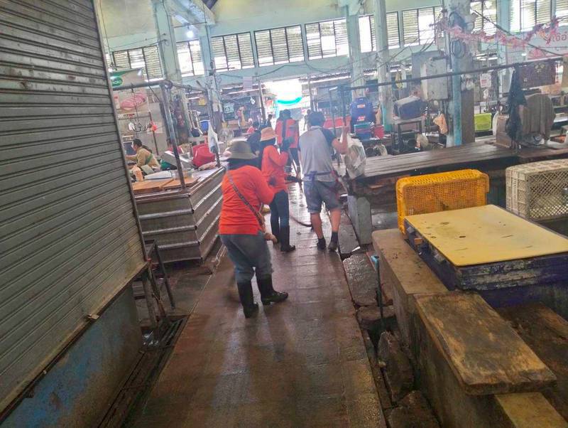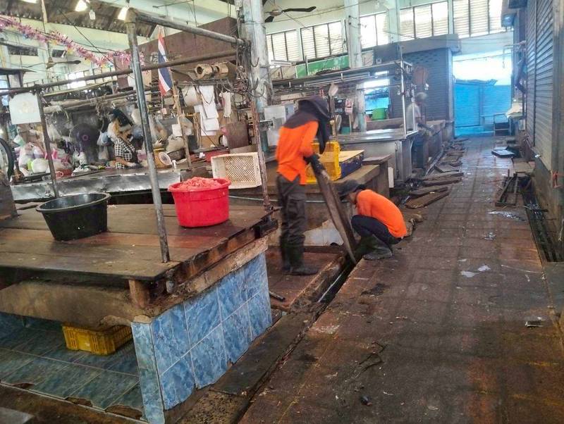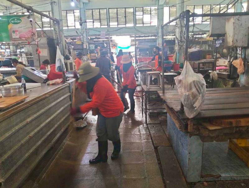 นายกเทศมนตรีเมืองลพบุรี มอบให้ เจ้าหน้าที่กองสาธารณสุขและสิ่งแวดล้อมเทศบาลเมืองลพบุรี และเจ้าหน้าที่งานป้องกันและบรรเทาสาธารณภัยเทศบาลเมืองลพบุรี นำอุปกรณ์ทำความสะอาด พร้อมด้วยรถดับเพลิง ออกปฏิบัติงานล้างตลาดสดเทศบาลเมืองลพบุรี ตักขยะและล้างท่อระบายน้ำ ตามหลักสุขาภิบาล เพื่อชำระล้างสิ่งสกปรก เชื้อโรค ทั้งภายในบริเวณตลาดสด