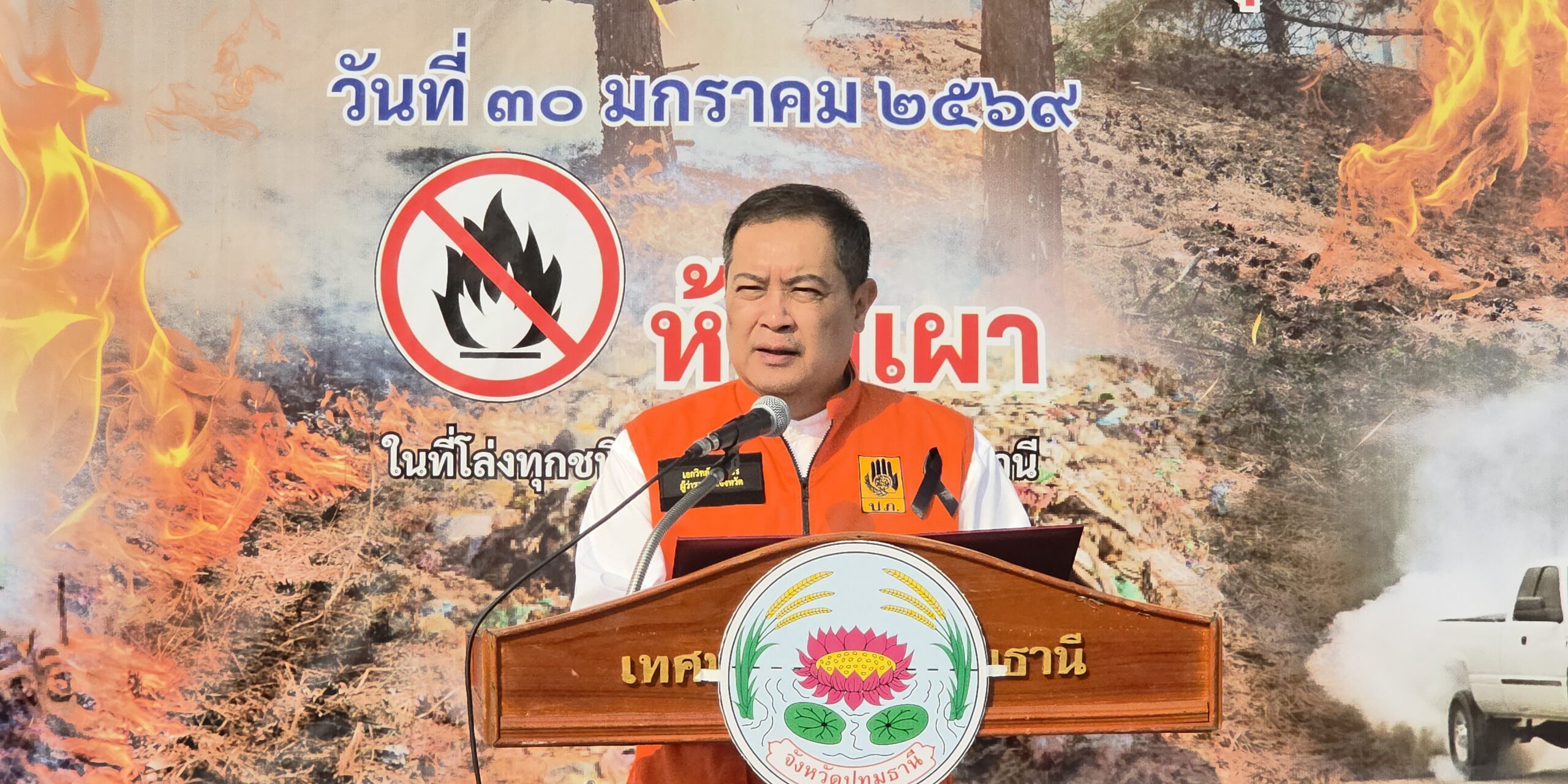 เมื่อเวลา 09.00 น. วันที่ 30 มกราคม 2569 จังหวัดปทุมธานีผนึกกำลังหน่วยงานท้องถิ่น จัดกิจกรรม “Kick Off การแก้ไขปัญหาฝุ่นละอองขนาดเล็ก (PM2.5) จังหวัดปทุมธานี” ที่ ลานจอดรถสวนเทพปทุม อ.เมืองปทุมธานี จ.ปทุมธานี โดยมีนายเอกวิทย์ มีเพียร ผู้ว่าราชการจังหวัดปทุมธานี เป็นประธาน พร้อมด้วย พลตำรวจโท คำรณวิทย์ ธูปกระจ่าง นายกองค์การบริหารส่วนจังหวัดปทุมธานี (นายกแจ๊ส) นำทีมร่วมขับเคลื่อนมาตรการเชิงรุกอย่างเต็มพิกัด