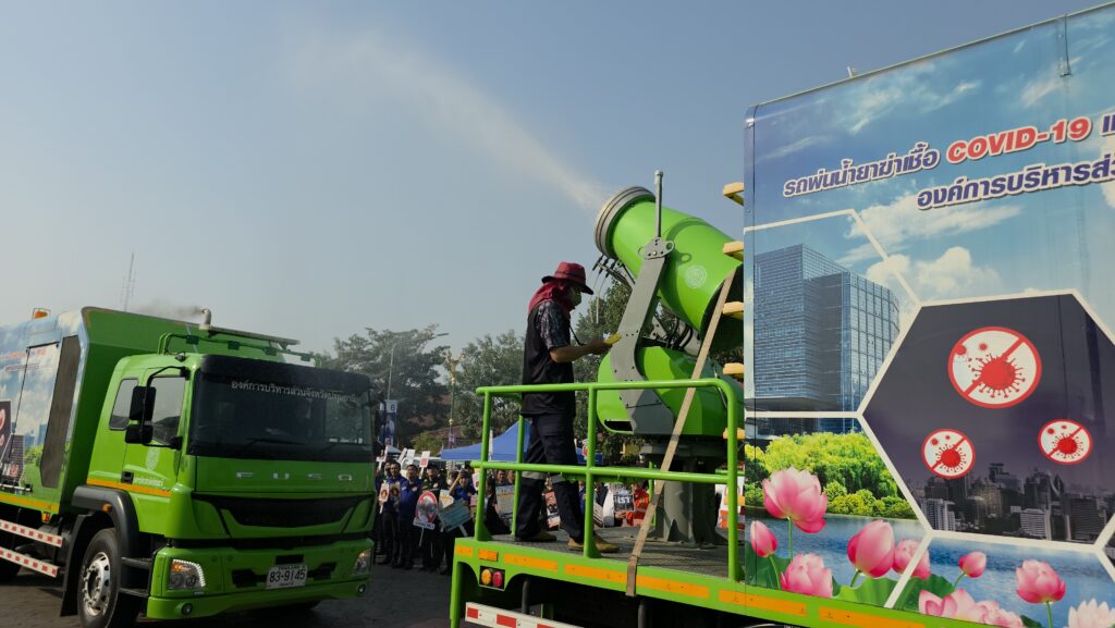 ด้าน พลตำรวจโท คำรณวิทย์ ธูปกระจ่าง นายก อบจ.ปทุมธานี เปิดเผยว่า อบจ.ปทุมธานี ไม่นิ่งนอนใจต่อสถานการณ์ที่เกิดขึ้น โดยได้สั่งการให้กองสาธารณสุขระดมรถฉีดพ่นละอองฝอยน้ำยาฆ่าเชื้อและดักจับฝุ่น พร้อมรถบรรทุกน้ำออกล้างถนนสายหลักและชุมชนหนาแน่นทันที เพื่อลดการฟุ้งกระจายของฝุ่นบนผิวจราจร “เราต้องทำงานแข่งกับเวลา เพราะสุขภาพของพี่น้องชาวปทุมธานีรอไม่ได้ วันนี้ อบจ. ร่วมกับจังหวัดและท้องถิ่น ปล่อยขบวนรถทำความสะอาดพร้อมกันเวลา 09.29 น. เพื่อปูพรมคืนพื้นที่สะอาดให้ประชาชนได้กลับมาหายใจได้เต็มปอดอีกครั้ง” พลตำรวจโท คำรณวิทย์ กล่าว