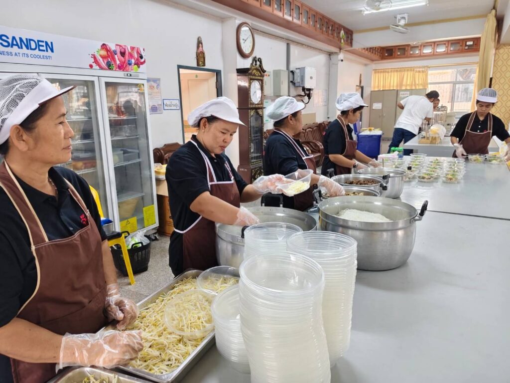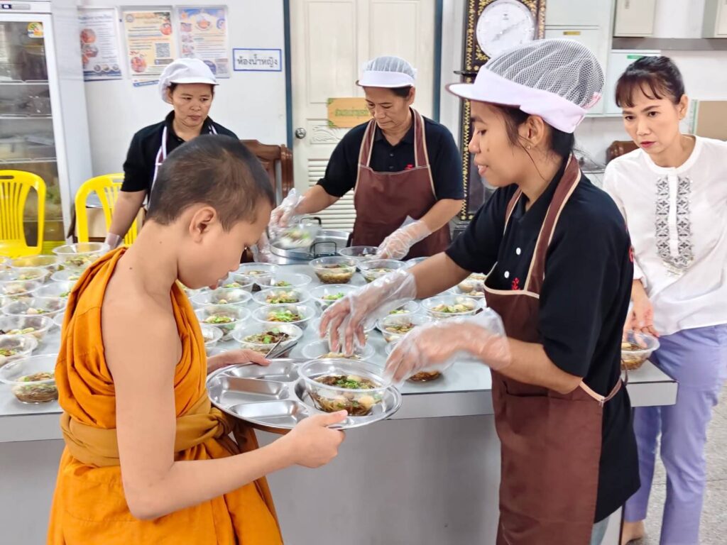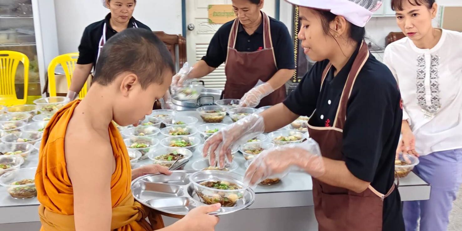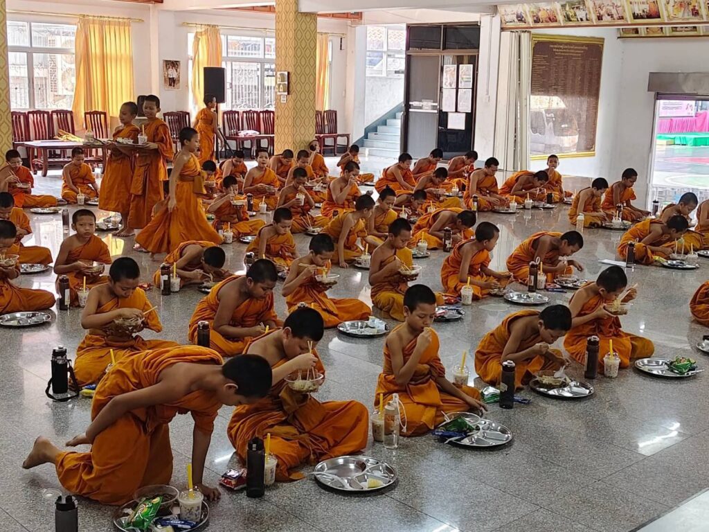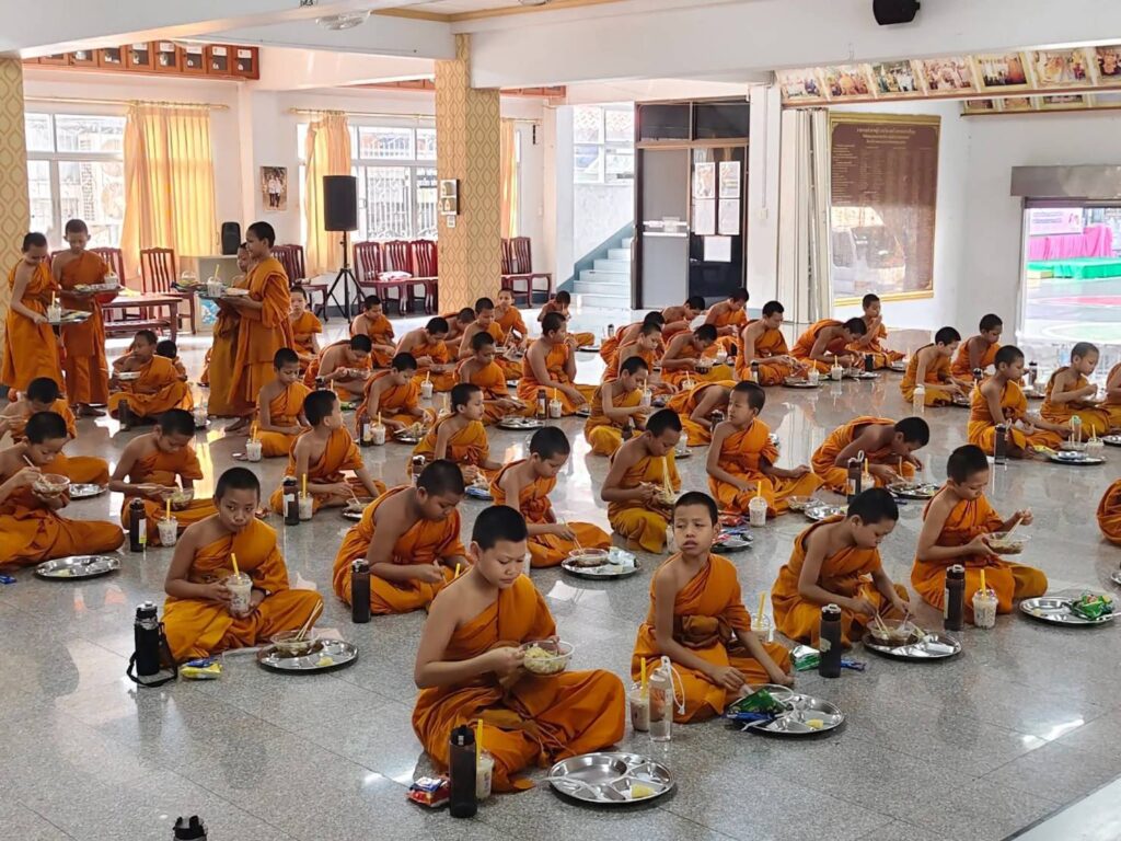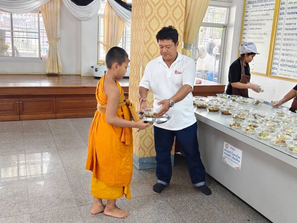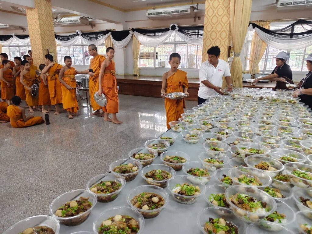 ในการนี้ ทีมงานได้ร่วมกันจัดตั้งโรงทาน นำก๋วยเตี๋ยวหมูตุ๋นรสเลิศ ถวายเป็นภัตตาหารเพลแด่สามเณรจำนวน ๒๕๐ รูป ซึ่งเดินทางมาจากสำนักเรียนทั่วประเทศเพื่อศึกษาพระธรรมวินัย ณ สำนักเรียนวัดชัยพฤกษมาลา