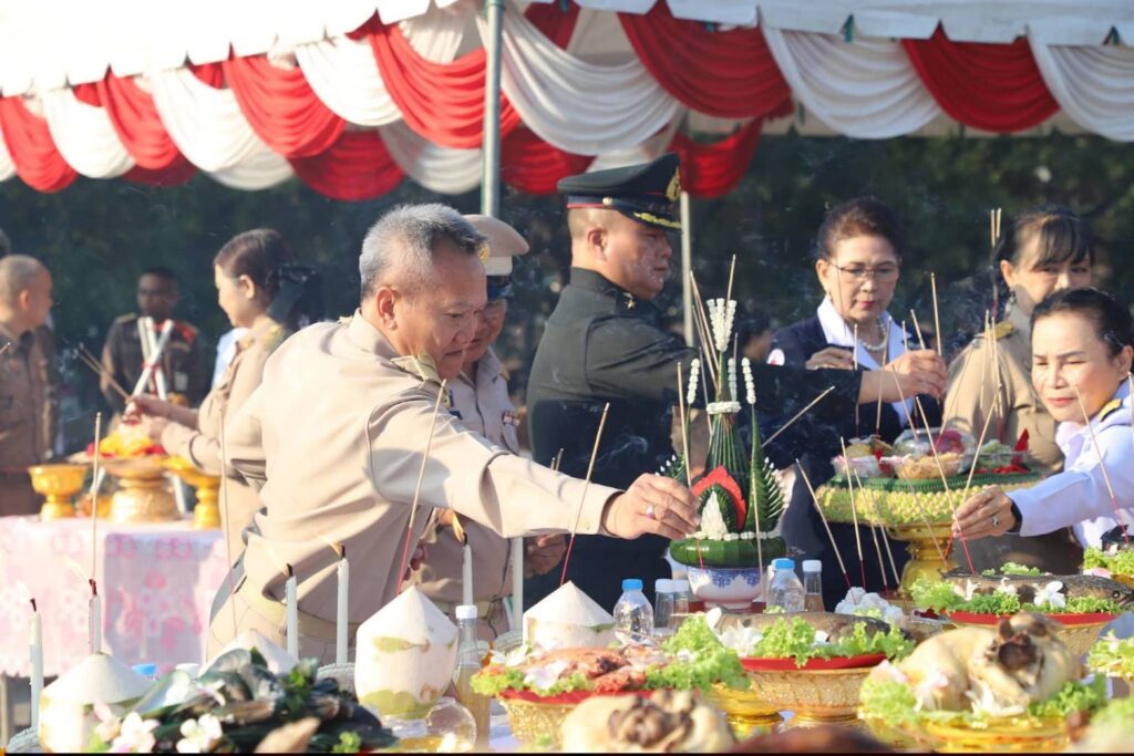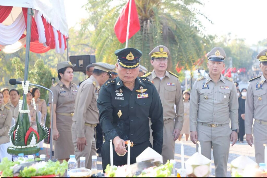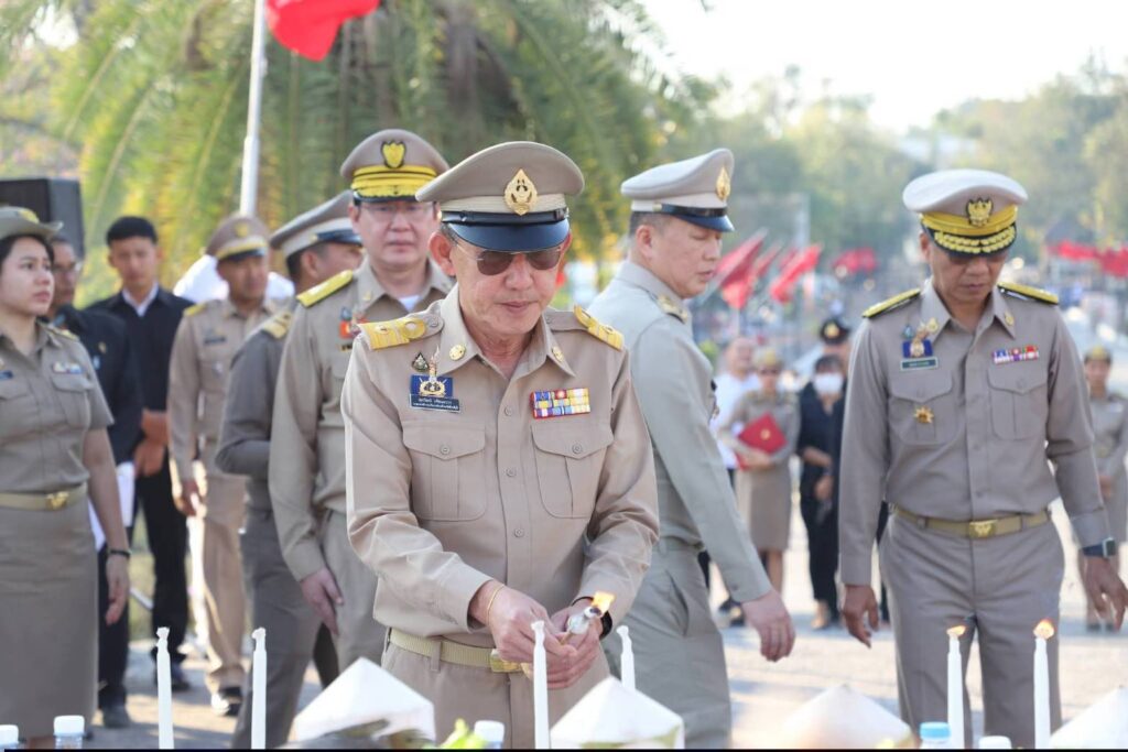 ในการนี้ นายสหชัย แจ่มประสิทธิ์สกุล รองผู้ว่าราชการจังหวัดสิงห์บุรี ได้นำคณะผู้บริหารระดับสูง หัวหน้าศาลจังหวัดสิงห์บุรี นายอำเภอ หัวหน้าส่วนราชการ ทหาร ตำรวจ ผู้บริหารองค์กรปกครองส่วนท้องถิ่น ข้าราชการ และประชาชน เข้าร่วมพิธีอย่างพร้อมเพรียง เพื่อร่วมกันแสดงพลังแห่งความสามัคคี และน้อมรำลึกถึงคุณงามความดีของวีรชนผู้เสียสละ
