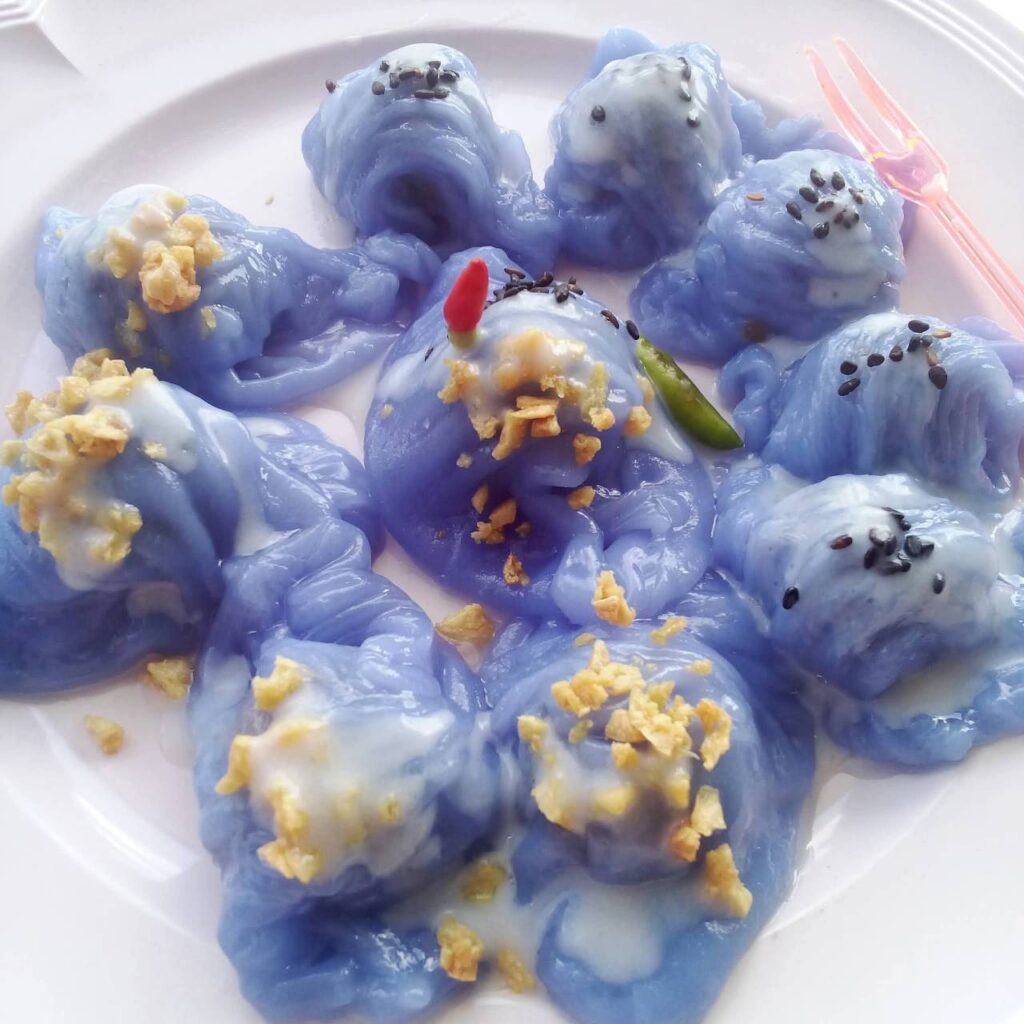 “แป้งสีม่วงจากอัญชัญรู้สึกว่าจะหนึบกว่าแป้งสีอื่นๆ อยู่นิดหน่อย นิดเดียว แป้งเขียวใบเตยก็เข้มข้นมาก เข้าปากก็ได้กลิ่นใบเตยเพราะปั่นใบเตยลงไปผสมในแป้งเลย ส่วนมากลูกค้าก็จะชอบสั่งแบบคละสี ได้กินครบทุกสี แต่หลายๆ คนก็จะชอบบางสีเป็นพิเศษก็สั่งสีเดียวหมดเลยก็ได้” เจ้าของร้านก๋วยจั๊บในวัดเล่าใก้กับทีมข่าว