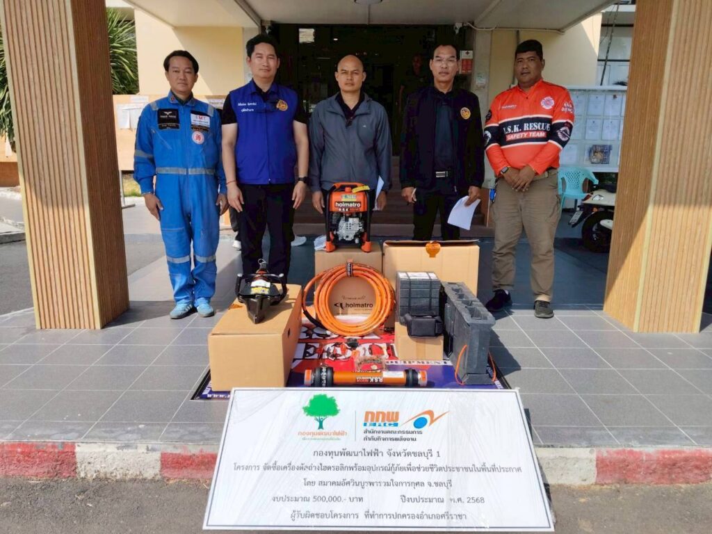 สมาคมอัศวินบูรพาร่วมใจ โดยการนำของ นาย ปองพล บัวพาเจริญเจริญ นายกฯกิตติมศักดิ์ และนาย สมชาย แก้วนุ่ม นายกสมาคมอัศวินบูรพาร่วมใจการกุศล ขอขอบคุณ ท่านรอง สันติ ศิริตันหยง รองนายกฯเทศมนตรีนครแหลมฉบังและดำรงตำแหน่ง ประธานคณะกรรมการ คพรต. ตำบลทุ่งสุขลา ,ท่าน สท.นเรศ บุญครอง เลขานุการ คพรต. ตำบลทุ่งสุขลา,ท่าน สุวรรณทอง คำภูมี ,ท่านวีระพงษ์ ศรีเจริญวงศ์วานศรีเจริญ ประธานชุมชนบ้านชากยายจีน ,ท่านเกรียงศักดิ์ พุทธตรัส รองประธานกองทุนพัฒนาไฟฟ้าชลบุรี 1 พร้อมด้วยคณะกรรมการ คพรต.ตำบลทุ่งสุขลา ทุกท่าน และท่าน ปลัดอำเภอศรีราชาทั้ง 3 ท่าน ประกอบด้วย นายพิพัฒน์พ อัมพรเพ็ชร์ ปลัดชำนาญการพิเศษ ว่าที่เรือตรี สินธ์ชัย นิติตุลย์รัฐ ปลัดอำเภอ นาย สุรชัย คำศรี ปลัดอำเภอศรีราชา ร่วมทำการส่งมอบและตรวจรับในครั้งนี้พร้อมด้วยเจ้าหน้าบริษัทอาร์เอสเคและเจ้าหน้าที่กองทุนไฟฟ้าอำเภอศรีราชาร่วมเสนอโครงการจัดซื้อเครื่องตัดถ่างไฮดรอลิคพร้อมอุปกรณ์กู้ภัยราคา 500,000 บาท เพื่อช่วยชีวิตประชาชนในพื้นที่ประกาศโดยมอบให้สมาคมอัศวินบูรพารวมใจการกุศล จังหวัดชลบุรี ในครั้งนี้