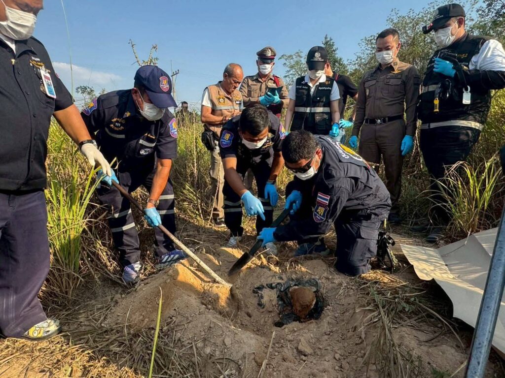 เมื่อเวลา 16.00 น. วันที่ 1 ก.พ.2569 พ.ต.อ.ณัฐพล ผ่องสุขสกุล ผกก.สภ.หนองปรือ ได้นับแจ้งพบชิ้นส่วนมนุษย์ถูกฝังดินอยู่ในไร่มันสัมปะหลัง ซอยพัฒนาการ 4 ต.หนองปรือ อ.บางละมุง จ.ชลบุรี หลังรับแจ้งจึงพร้อมด้วย พ.ต.อ.วสุรัชย์ ชัยธีราพัฒน์ รอง ผบก.ภ.จว.ชลบุรี พ.ต.ท.ธนา วิเศษชัย รอง ผกก.สส.สภ.หนองปรือ พ.ต.ท.ธัชกร ไชยสิทธิ์ นักวิทยาศาสตร์ (สบ.3) กลุ่มงานตรวจสถานที่เกิดเหตุ ศูนย์พิสูจน์หลักฐาน 2 นำกำลังตำรวจสืบสวนภาค 2 , ตำรวจสืบสวน ภ.จว.ชลบุรี , ตำรวจท่องเที่ยวเมืองพัทยา , ตำรวจตรวจคนเข้าเมืองชลบุรี และหน่วยกู้ภัยมูลนิธิสว่างบริบูรณ์ธรรมสถานเมืองพัทยา รีบรุดไปตรวจสอบ