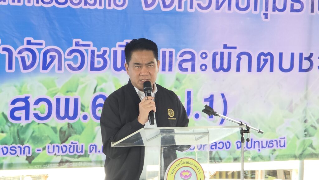 ด้าน นายดงพล รุจิธรรมธัช รองผู้ว่าราชการจังหวัดปทุมธานี กล่าวว่า ปัญหาผักตบชวาที่กีดขวางทางน้ำและการสัญจร ส่งผลกระทบโดยตรงต่อประสิทธิภาพการระบายน้ำ วันนี้เป็นเรื่องน่ายินดีที่ทุกภาคส่วนมารวมตัวกันเพื่อฟื้นฟูแหล่งน้ำอย่างยั่งยืน โดยนำนวัตกรรม สวพ.62 ซึ่งเป็นงานวิจัยจากกรมชลประทานที่ผ่านการทดลองจนสัมฤทธิ์ผล มีต้นทุนต่ำ แต่มีประสิทธิภาพสูง และที่สำคัญที่สุดคือ ไม่ทิ้งสารพิษตกค้าง มีความปลอดภัยต่อสิ่งแวดล้อม มาใช้จัดการทรัพยากรน้ำในจังหวัดปทุมธานีของเราให้ยั่งยืนตลอดไป