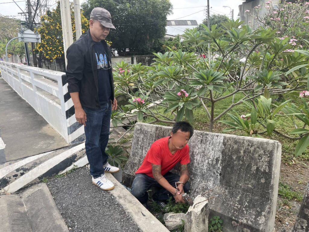 ด้าน พ.ต.อ.บุญโรจน์ ผกก.สน.บางขุนเทียน เผยว่า ผู้ต้องหารายนี้ ให้การรับสารภาพว่าได้ก่อเหตุจริง วันก่อเหตุ จะยืมจักรยาน คนแถวนั้น ปั่นไปตามถนน ในตะกร้าหน้ารถจะเอาค้อนปอนด์ใส่ในกระเป๋า พอไปถึง มองว่าไม่มีใครเดิน ก็จะใช้ค้อนถุบ เสาปูนแล้วงัดเอาแผ่านทองเหลืองออกมา ได้ก็จะนำไปขาย ได้กิโลละ 150 บาท แผ่น 1หนัก 2 กิโล ก็ขายได้ 300 บาท แล้วนำเงินมาใช้จ่ายพร้อมกับไปซื้อยามาเสพ ทำมา2-3ครั้ง เคยถูกจับในคดี ลักทรัพย์ตัดสายไฟ มาก่อน