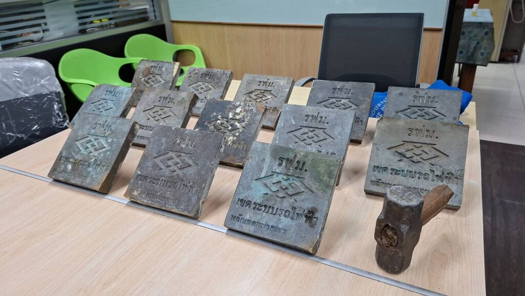 วันที่4กพ.เวลา 18.00น.ถายใต้อำนวยการ พล.ต.ต.สามารถ พรหมชาติ ผบก.น9.พ.ต.อ.ธีระชัย เด็ดขาด รอง ผบก.น9.รับรายงานจาก พ.ต.อ.บุญโรจน์ โลจายะ ผกก.สน.บางขุนเทียน ฝาายสืบสวน สน.บางขุนเทียนนำโดย พ.ต.ท.จารุกิตติ์พัฒน์ สุขยิ่ง รองผกก.สส. พ.ต.ท.ขจร ธูปประกายศรี สว.สส.พ.ต.ท.สังคม หาญณรงค์ สว.สส.สน.บางขุนเทียน จับกุมนายอำนวย เปาโรหิตย์ อายุ 35 ปี พร้อมด้วยของกลาง ในการก่อเหตุ 1รถจักรยาน 2 ค้อนปอนด์ 3กระเป๋าหูหิ้วสีฟ้า 4 แผ่นทองเหลืองหมุดเขตระบบไฟฟ้ารฟม.จำนวน 13ชิ้น จับกุมได้ที่ร้านรับซื้อของเก่า ย่านกีลปพฤษ แจ้งข้อหา”ลักทรัพย์ หรือ รับของโจร และเสพยาเสพติดให้โทษ ประเภทที่1(เมทแอมเฟตามีน) โดยผิดกฎหมาย