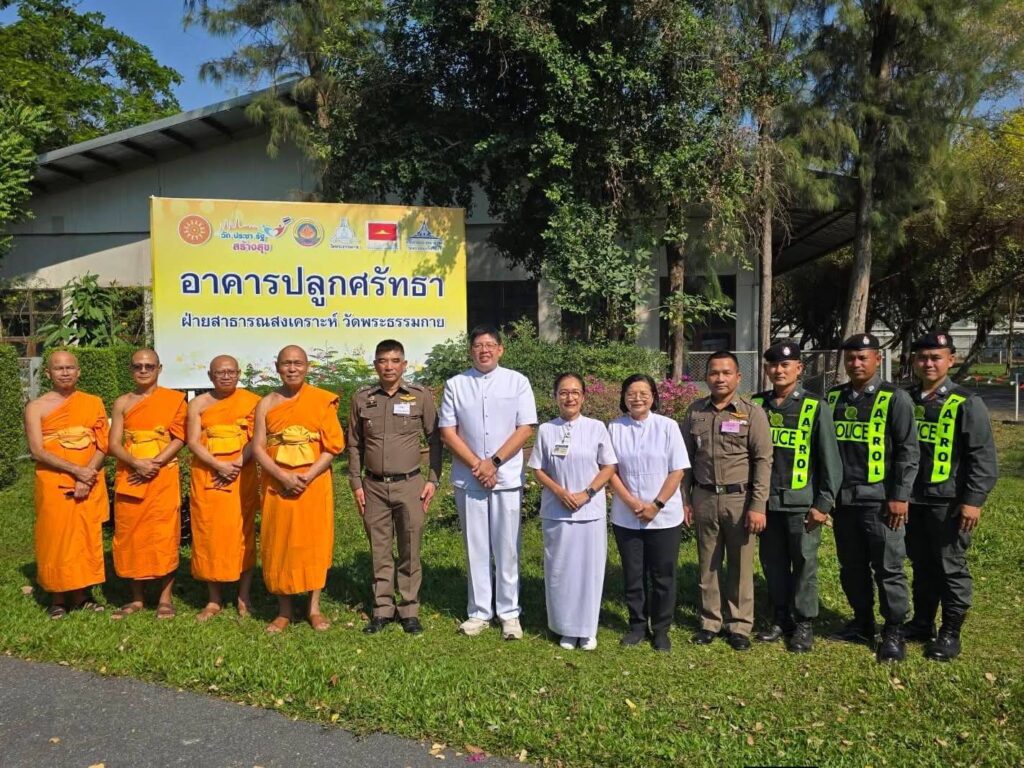 โดยมีการดำเนินกิจกรรมด้านสาธารณสงเคราะห์ พร้อมจัดกิจกรรมจิตอาสาและการศึกษาธรรมะ เพื่อเสริมสร้างขวัญกำลังใจแก่ผู้ปฏิบัติงาน ทั้งนี้ การดำเนินงานดังกล่าวเกิดขึ้นเมื่อวันพุธที่ 2 กุมภาพันธ์ 2569 พระครูปลัดรัตนวีรวัฒน์ (รังสฤษดิ์ อิทฺธิจินฺตโก) เจ้าอาวาสวัดพระธรรมกาย พร้อมด้วย พ.ต.อ.ทวีศักดิ์ จินดาศักดิ์ รองผู้บังคับการตำรวจตระเวนชายแดนภาค 1 และคณะ ได้ร่วมตรวจเยี่ยมความพร้อมในการจัดสอบคัดเลือกครู ตชด. ซึ่งมีเป้าหมายเพื่อคัดเลือกบุคลากรที่มีความรู้ความสามารถและมีจิตสาธารณะ เข้าปฏิบัติหน้าที่เป็นครูในโรงเรียนตำรวจตระเวนชายแดนตามพื้นที่ห่างไกลและแนวชายแดนทั่วประเทศ