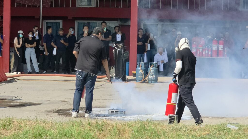 นอกจากนี้ ภายในงาน เจ้าหน้าที่ฝ่ายป้องกันและบรรเทาสาธารณภัย เทศบาลเมืองคลองหลวง ได้โชว์ทักษะความพร้อมในการใช้อุปกรณ์ดับเพลิงหลากหลายรูปแบบ ตั้งแต่ก๊าซ CO2 จนถึงถังดับเพลิง TN-EV รุ่นใหม่ล่าสุด พร้อมจำลองสถานการณ์ระงับเหตุในพื้นที่เสี่ยง อาทิ การจัดการกับแบตเตอรี่ลิเธียมไอออน (Lithium-ion Battery) ในรถยนต์ไฟฟ้า (EV) ที่กำลังลุกไหม้ สถานีชาร์จรถไฟฟ้า (EV Station), อาคารจอดรถ จุดติดตั้งระบบโซล่าร์เซลล์ และภารกิจป้องกันเพลิงจากสถานการณ์ต่างๆ เพื่อตอกย้ำมาตรฐานการป้องกันภัยที่ก้าวทันเทคโนโลยีพลังงานสะอาด