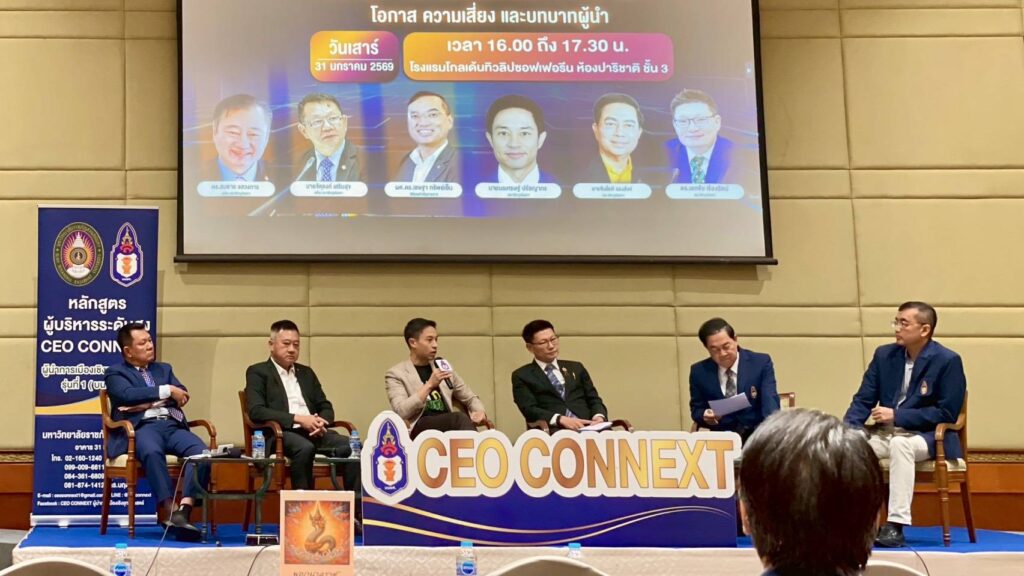 เมื่อวันที่ 31 มกราคม 2569 ณ โรงแรมโกลเด้นทิวลิป ซอฟเฟอรีน ในหลักสูตรผู้บริหารระดับสูงผู้นำการเมืองเชิงยุทธศาสตร์ รุ่นที่ 1 (บนยศ.1) โดย CEO CONNEXT ได้มีการจัดเสวนาวิชาการหัวข้อสำคัญ “ฉากทัศน์การเมืองไทย 3–5 ปีข้างหน้า : โอกาส ความเสี่ยง และบทบาทผู้นำ” ท่ามกลางบรรยากาศการจับตาอนาคตประเทศจากหลายภาคส่วน