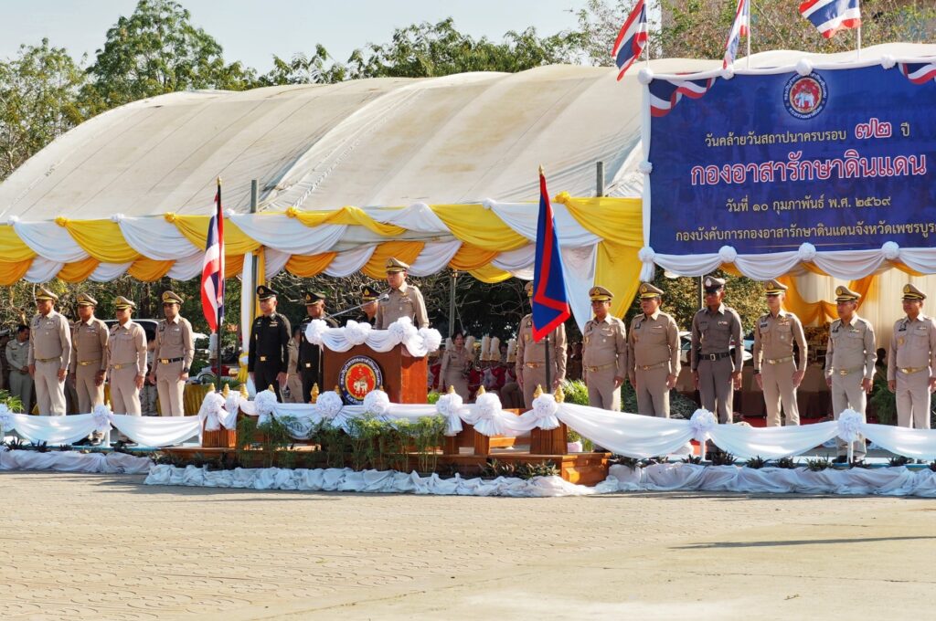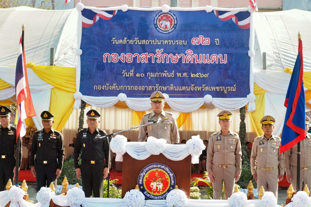 เมื่อวันที่ 10 กุมภาพันธ์ 2569 เวลา 08.30 น. ที่บริเวณหน้าศาลากลางจังหวัดเพชรบูรณ์ จังหวัดเพชรบูรณ์ได้จัดกิจกรรมเนื่องในวันคล้ายวันสถาปนากองอาสารักษาดินแดน ประจำปี 2569 ครบรอบ 72 ปี โดยมี นายกองเอกสืบพงษ์ นิ่มพูลสวัสดิ์ รองผู้บังคับการกองอาสารักษาดินแดนจังหวัดเพชรบูรณ์ เป็นประธานในพิธี พร้อมด้วยรองผู้บังคับการกองอาสารักษาดินแดนจังหวัดเพชรบูรณ์ หัวหน้าส่วนราชการ และสมาชิกกองอาสารักษาดินแดน เข้าร่วมอย่างพร้อมเพรียง