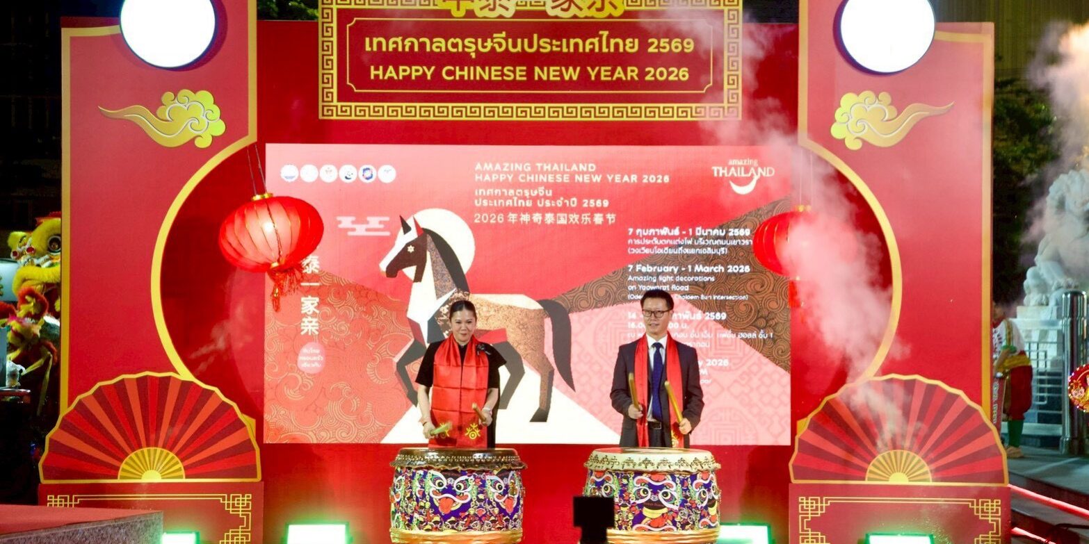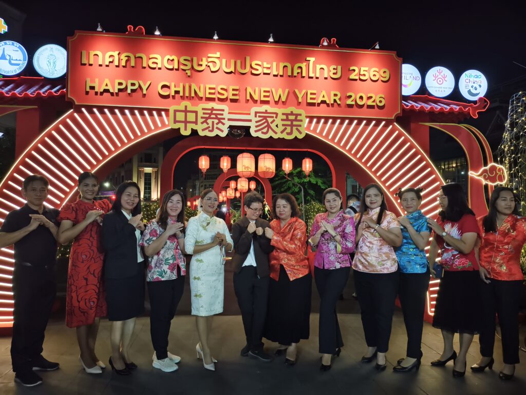 เย็นนี้ (11 กุมภาพันธ์ 2569) นางสาวฐาปนีย์ เกียรติไพบูลย์ ผู้ว่าการการท่องเที่ยวแห่งประเทศไทย (ททท.) และนายหยาง เสี่ยวหลง ที่ปรึกษาฝ่ายวัฒนธรรมสถานเอกอัครราชทูตสาธารณรัฐประชาชนจีนประจำประเทศไทย ร่วมเป็นประธานในพิธีเปิดประดับตกแต่งไฟในเทศกาลตรุษจีน ประจำปี 2569
