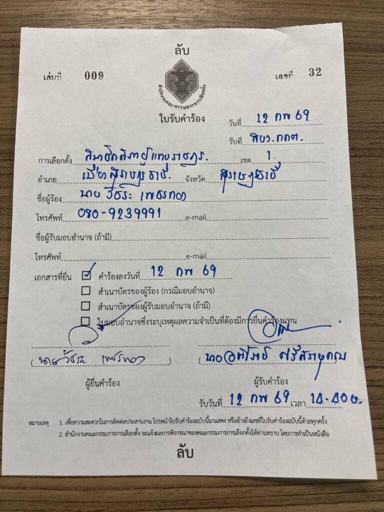 นายวัชระ เพชรทอง ผู้สมัครสส.เขต 1 สุราษฎร์ธานี ยื่นพยานหลักฐานคลิปเสียงและภาพให้กกต.เร่งสรุปสำนวนการส่อว่ากระทำผิดกฎหมายเลือกตั้งของประธานชมรมผู้สูงอายุขุนทะเลกับพวก โดยถอดเทปคำพูดของเจ้าหน้าที่ตำรวจและบุคคลที่อ้างว่าเป็นผู้ช่วยสส.ส่งกกต.กลางให้พิจารณาด้วย ทั้งนี้เหตุเกิดเมื่อวันที่ 1 กุมภาพันธ์ 2569 ศาลจังหวัดสุราษฎร์ธานีได้อนุมัติหมายค้นหลังเจ้าของบ้านไม่ยินยอมให้เจ้าหน้าที่ตำรวจและกกต.เข้าค้นบ้านในขณะเกิดเหตุซึ่งเป็นการส่อพิรุธชัดเจนตามภาพและคลิปเสียงที่นำส่งให้กกต.ในวันนี้