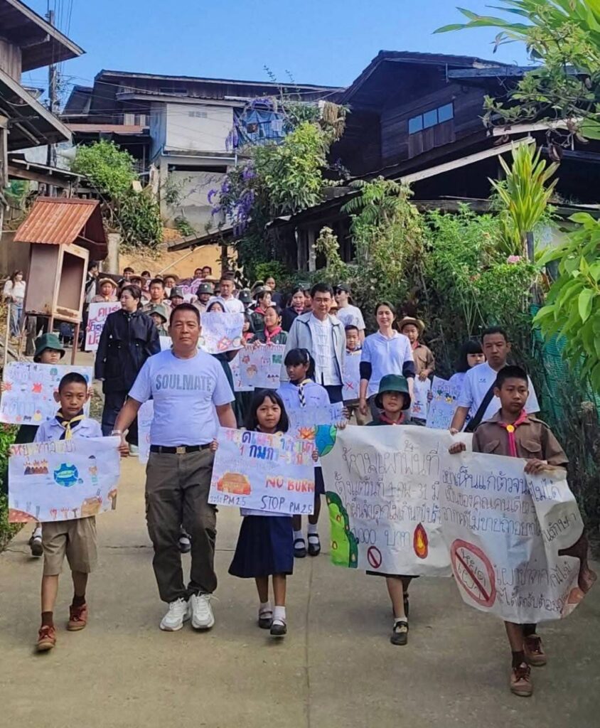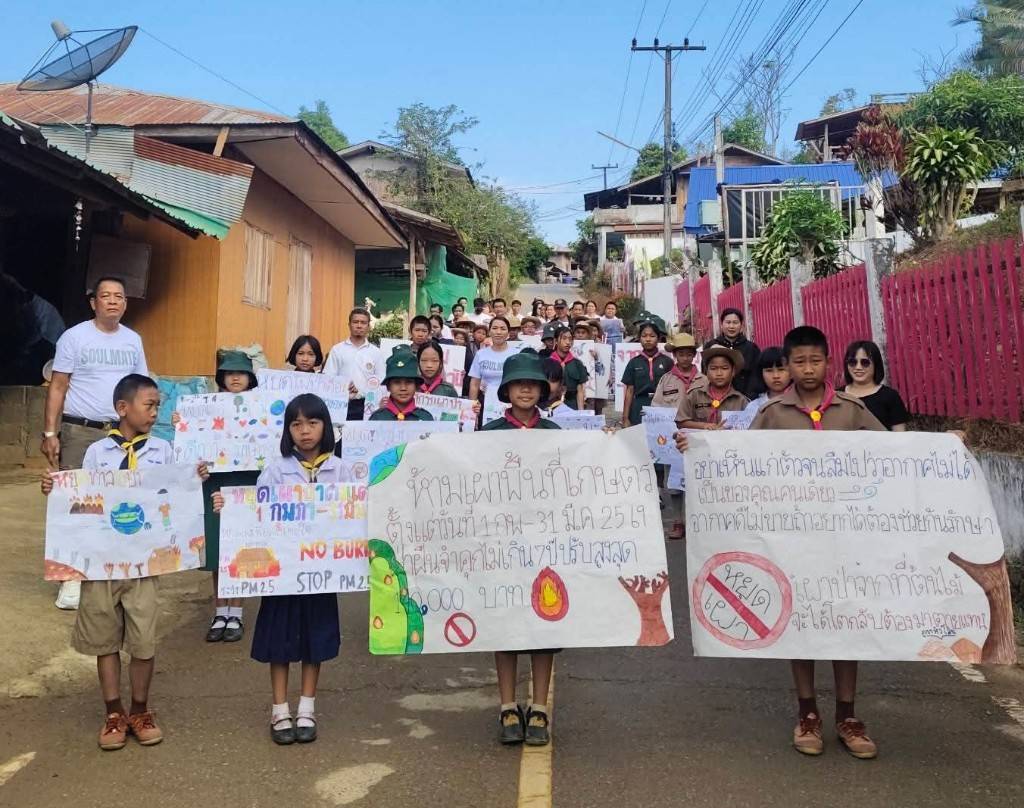 นายอมรชัย วิไลรัตน์ ปลัดอำเภอ ร่วมกับ นางปราณปรียา อดุลย์ศรี ผู้ใหญ่บ้านหมู่ที่ 3 ตำบลสกาด ครูและนักเรียนโรงเรียนสกาดพัฒนา โรงเรียนบ้านสกาดใต้ ปลัดองค์การบริหารส่วนตำบลสกาด เจ้าหน้าที่ และประชาชนในพื้นที่ ร่วมเดินรณรงค์ให้ความรู้เรื่องการงดเผาทุกรูปแบบ อันตรายของฝุ่น PM2.5 ผลกระทบจากการเผา และประโยชน์ของการหยุดเผา เพื่อสร้างความตระหนักรู้และความร่วมมือจากประชาชนในชุมชน - การทำแนวกันไฟชุมชน