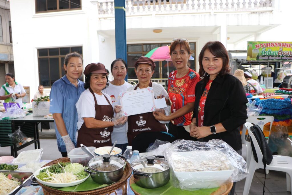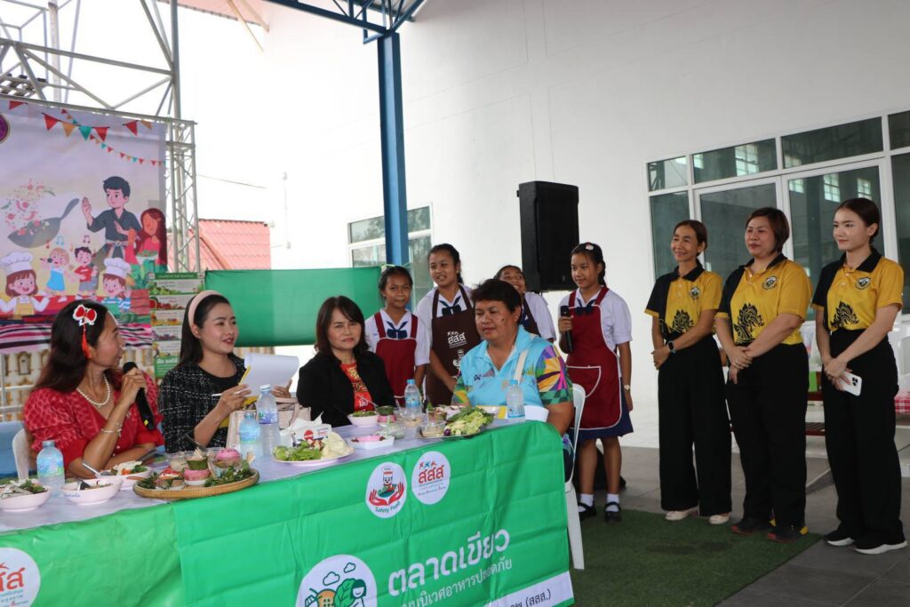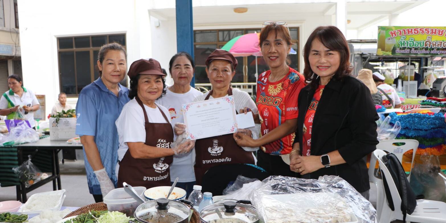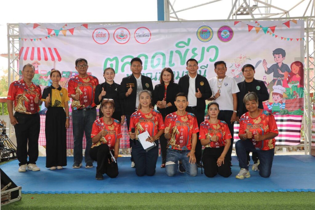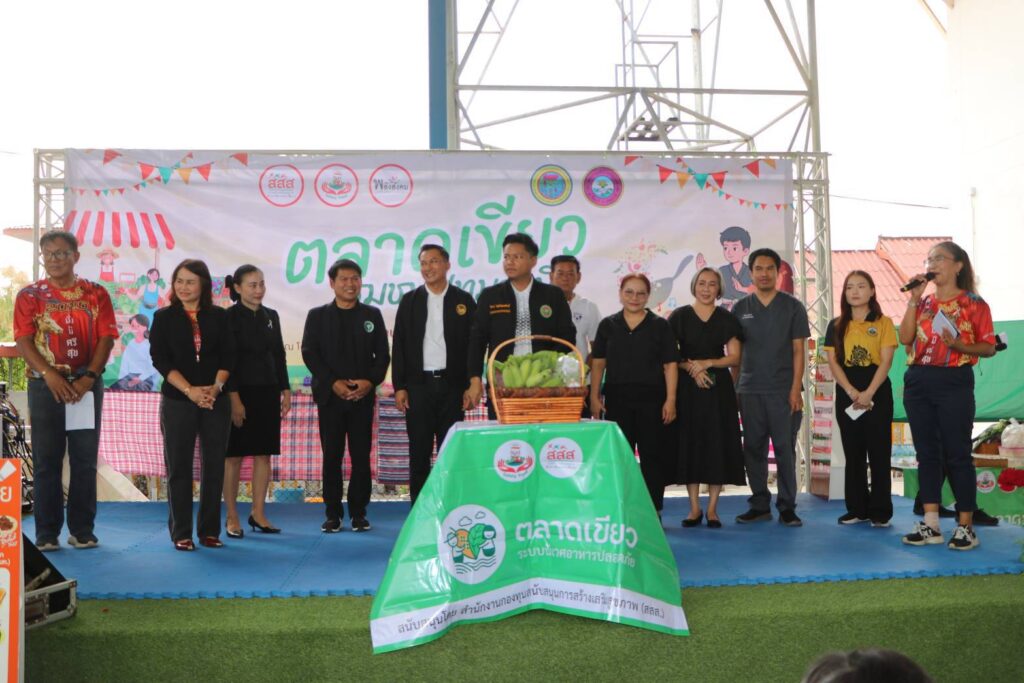 เมื่อวันที่ 13 กุมภาพันธ์ 2569 ณ.โดมใหญ่ข้างศาลาใหม่ วัดสระบัว อ.ธัญบุรี จ.ปทุมธานี ดร.ณัจยา แก้วนุ้ย (ดร.จิ) ผู้จัดการโครงการพัฒนาและขยายผลระบบอาหารเพื่อสุขภาวะตลอดห่วงโซ่ในโรงเรียนและชุมชน ในจังหวัด สงขลา ปทุมธานี สุพรรณบุรี พัทลุง และนครปฐม สนับสนุนโดย สำนักงานกองทุนสนับสนุนการสร้างเสริมสุขภาพ (สสส.) ร่วมกับสมาคมการค้าธุรกิจอาหาร มูลนิธิเครือข่ายพลังสังคม และหน่วยงานภาครัฐ ของจังหวัดปทุมธานี ได้จัดกิจกรรมเปิดตลาดเขียวชุมชนในจังหวัดปทุมธานี อบรมให้ความรอบรู้ด้านอาหารและโภชนาการ เพื่อยกระดับความปลอดภัยทางอาหาร ส่งเสริม สนับสนุนผลผลิตทางการเกษตรปลอดสารพิษ สร้างเมนูอาหารปลอดภัยเพื่อสุขภาพ รณรงค์ลดความเสี่ยงโรค NCDs ลด หวาน มัน เค็ม ในการจัดกิจกรรมตลาดเขียวในชุมชน ครั้งนี้ เพื่อเน้นการพัฒนาและขยายผลระบบห่วงโซ่อาหารยั่งยืนตั้งแต่ผู้ผลิตสู่ผู้บริโภค คือ การนำผักและผลไม้ปลอดภัย จากการเพาะปลูกของโรงเรียน 5 แห่ง และ 9 ชุมชน ที่ได้เข้าร่วมโครงการฯ มาจำหน่ายผลผลิต เป็นการนำความต้องการของผู้บริโภคอาหารไร้สารพิษ และความต้องการขายผลิตภัณฑ์ที่ปลอดภัยมาเจอกัน ดังนั้นสินค้าที่นำมาจำหน่ายจึงเหมือนเป็นการกลั่นกรองในระดับหนึ่งว่าเป็นสินค้าที่ปลอดภัยเชื่อถือได้ ปรับเปลี่ยนทัศนคติในเรื่องอาหารออร์แกนิคที่คนทั่วไปคิดว่ามีราคาแพง เพื่อตอบสนองให้เกิดการบริโภคอาหารปลอดภัย มีการสุ่มตรวจสารปนเปื้อน และยาฆ่าแมลงในพืช ผักที่นำมาจำหน่าย ซึ่งผลการตรวจ ผลผลิตทางการเกษตรมีความปลอดภัย มีกิจกรรมการออกร้านจำหน่ายสินค้าของชุมชน ซุ้มนิทรรศการสินค้าพูดได้ การบริการตรวจสุขภาพ โดย เจ้าหน้าที่สาธารณะสุขจาก รพ.สต. มีการแข่งขัน