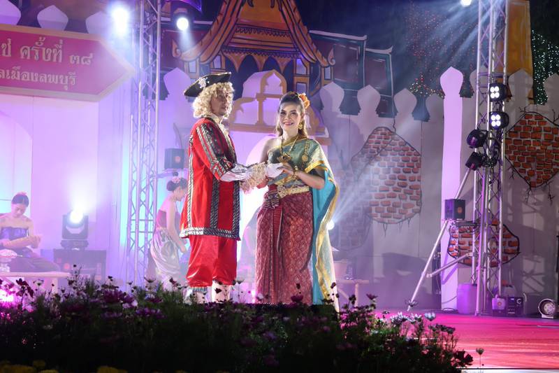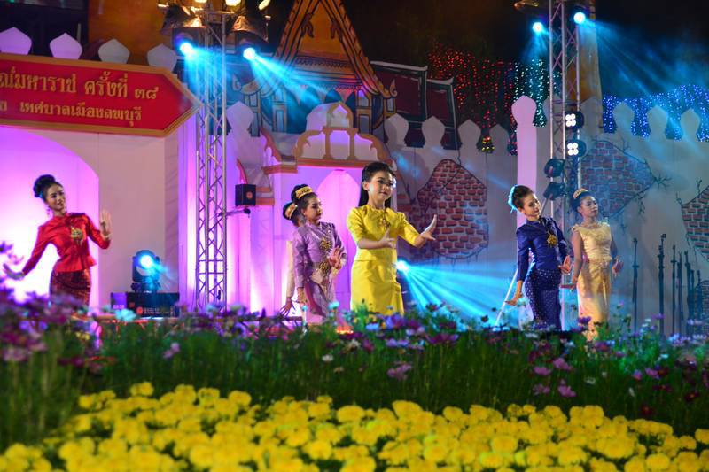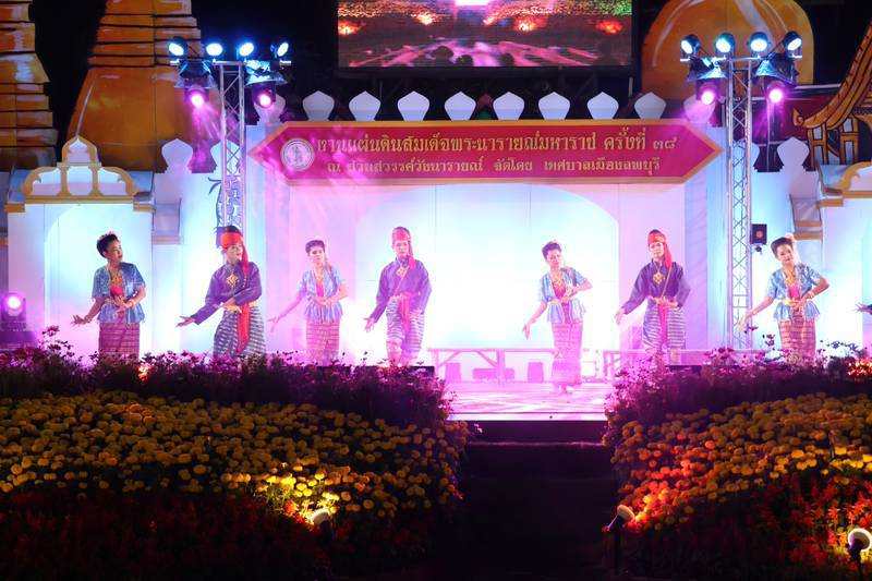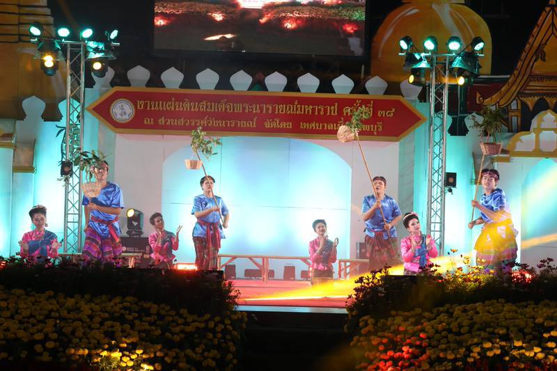 บรรยากาศ การแสดงจินตนาการประกอบ แสง เสียง และสื่อผสม ชุด “เสน่ห์แห่งวิถี ธานีเมืองลพ นบนารายณ์ น้อมอาลัยพระแม่พันปี” การบรรเลงดนตรีไทย
