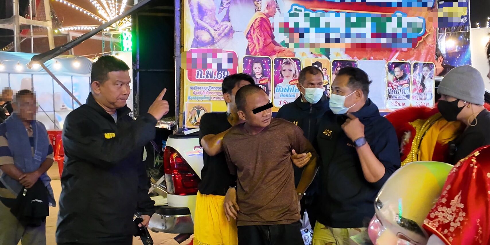 พล.ต.ต.ธีรเดชฯ สั่งการวางแผนการจับกุมด้วยแผนการพลางตัวสุดแยบยลเพื่อเข้าถึงตัวคนร้ายโดยมิให้รู้ตัว กระทั่งวันที่ 18 ก.พ.2569 ชุดสืบสวนสืบทราบว่าคนร้ายนัดหมายกับกลุ่มเพื่อนเพื่อจะไปมั่วสุมยาเสพติดตามวัด จึงวางแผนกระจายตามวัด โดยทีมสืบสวนปลอมตัวเป็นคณะเชิดสิงโตอยู่ในงานประจำปี ณ วัดชื่อดังแห่งหนึ่งใน ต.ไทรน้อย อ.ไทรน้อย จ.นนทบุรี เพื่อสังเกตการณ์ตามล่าคนร้าย กระทั่งช่วงค่ำ ทีมสืบสวนได้ไล่แสกนหน้าบุคคลภายในวัดพบกับชายต้องสงสัยใบหน้าคล้ายคนร้ายมาปรากฏตัวภายในวัด ครานี้ทีมสืบสวนจะไม่ปล่อยให้คนร้ายวิ่งหลบหนีได้อีก ทีมสืบสวนในบทบาทคณะสิงโตจึงค่อยๆ เชิดสิงโตเข้าไปใกล้ๆ กับคนร้าย จนประชิดตัวร้าย ก่อนล้อมรวบจับคนร้ายได้ในที่สุด โดยคนร้ายยังอยู่ในอาการงุนงง หลังจับกุมตรวจสอบพบว่าคนร้ายคือ นายอดิศักดิ์ หรือ โจโจ้ อายุ 33 ปี ตรวจพบว่าเคยต้องโทษคดีเกี่ยวกับ ยาเสพติด และ การลักทรัพย์ เป็นจำนวน 6 คดี จากการขยายผลชุดสืบสวนได้ยึดของกลางได้หลายรายการ และสืบทราบว่า นายอดิศักดิ์ฯ เป็นบุคคลที่ไม่มีทะเบียนราษฎร์เนื่องจากครอบครัวมิได้ไปแจ้งเกิด และใช้ชีวิตพเนจรมาตั้งแต่อายุเพียง 11 ปี อาศัยการลักเล็กขโมยน้อยเพื่อนำเงินไปซื้อยาเสพติดเสพ หลังจับกุมตัวได้นำตัวส่งพนักงานสอบสวน สน.ประชาชื่น เพื่อดำเนินคดีตามกฏหมายและทำการขยายผลเพื่อติดตามทรัพย์สินคืนผู้เสียหายต่อไป