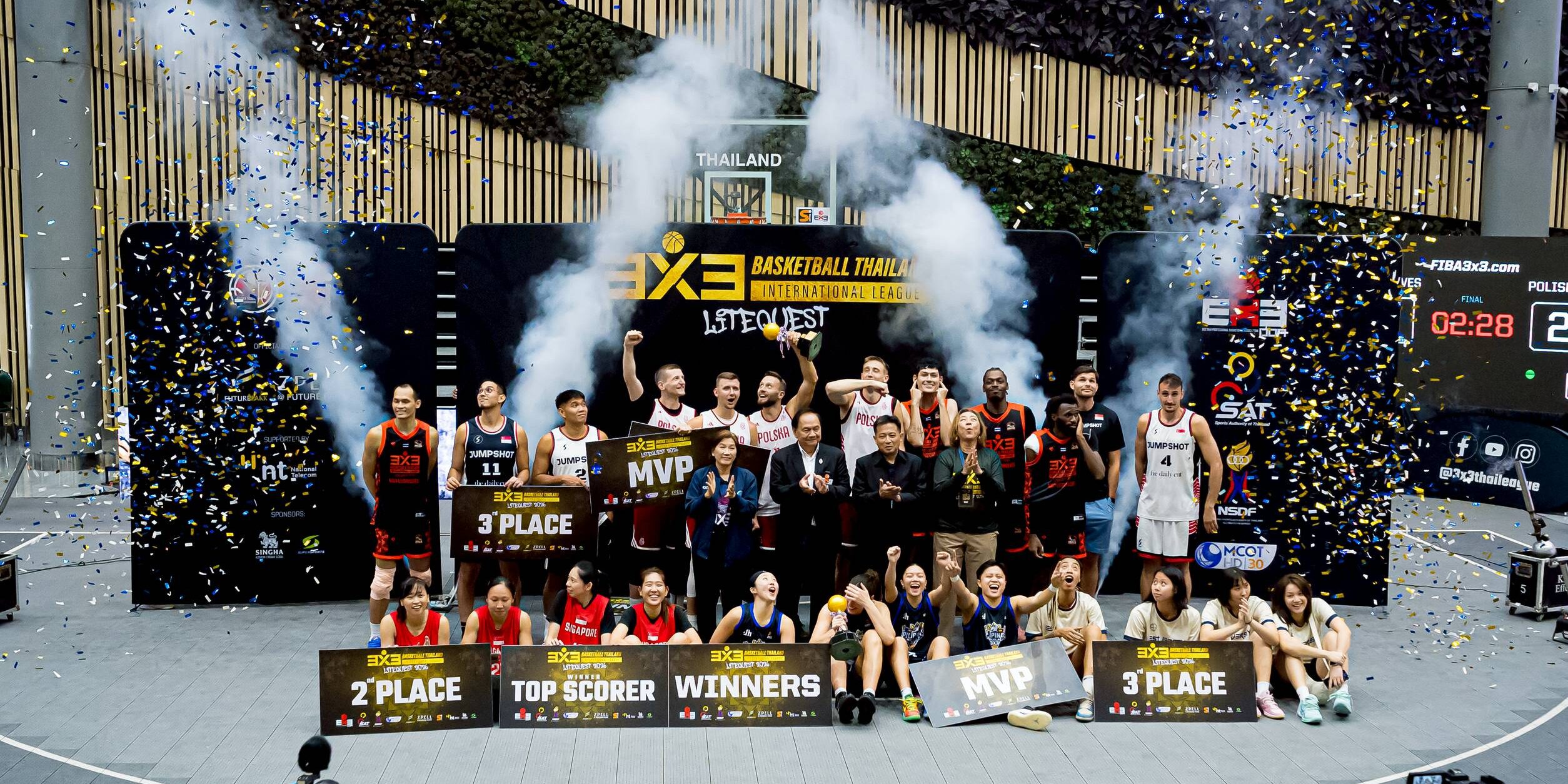 การแข่งขันบาสเกตบอลสามคนอาชีพนานาชาติ รายการ “3×3 Basketball Thailand International League 2026” (3×3 BTIL 2026) รูดม่านปิดฉากลงอย่างสง่างาม ณ Alive Park Hall ศูนย์การค้าฟิวเจอร์พาร์ค และ สเปลล์ เมื่อวันที่ 1 มี.ค.2569 ที่ผ่านมา ได้รับเกียรติจาก นายองครักษ์ ทองนิรมล รองผู้ว่าราชการจังหวัดปทุมธานี เป็นประธานในพิธีปิดและมอบรางวัลให้แก่ผู้ชนะ