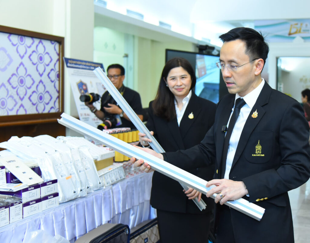 ร่วมแถลงผลงานการจับกุมสินค้าหลีกเลี่ยงอากรตอบโต้การทุ่มตลาด และสินค้าสวมสิทธิ์ปลอมแปลงถิ่นกำเนิด