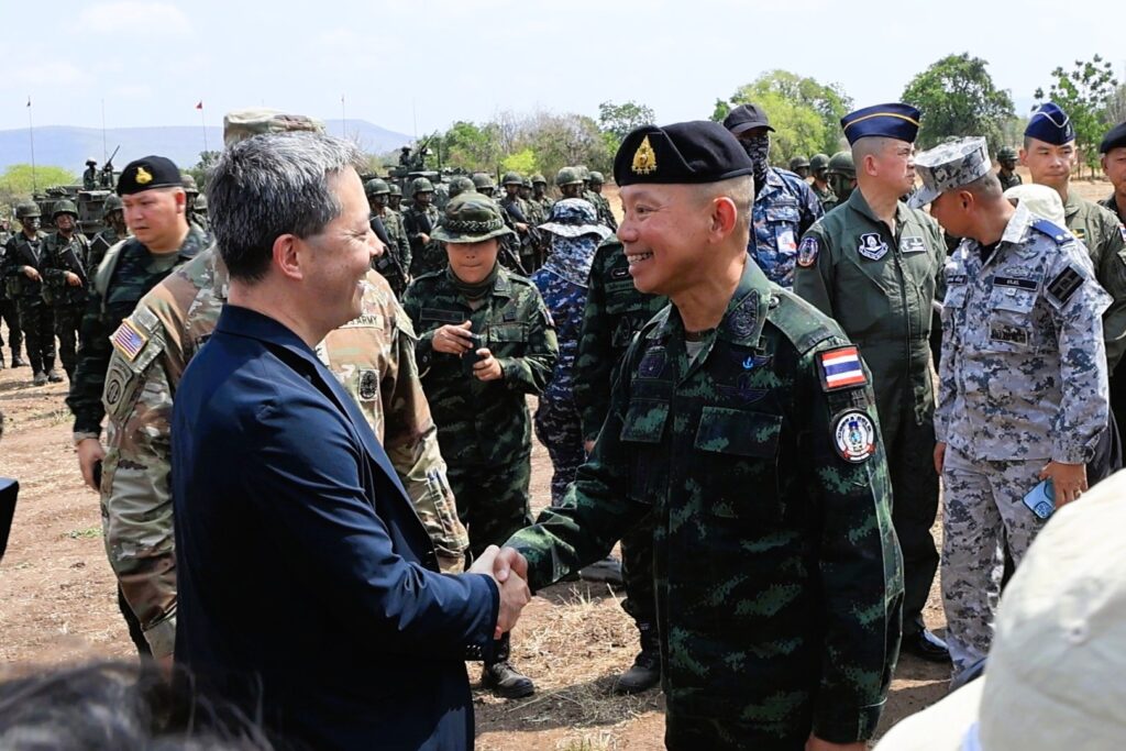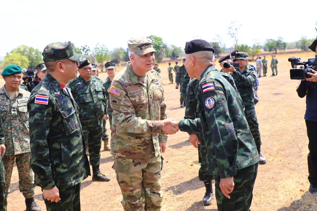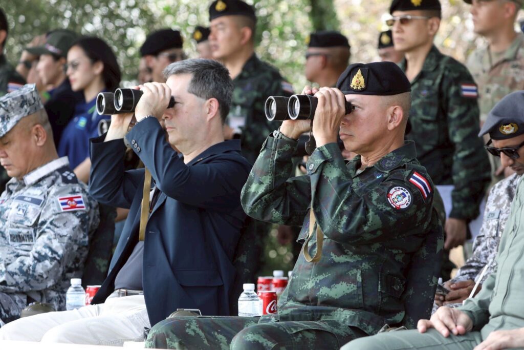 วันที่ 6 มีนาคม พ.ศ. 2569 เวลา 09.40 น. ณ สนามฝึกทางยุทธวิธี บ้านดีลัง จังหวัดลพบุรี พลเอก อุกฤษฎ์ บุญตานนท์ ผู้บัญชาการทหารสูงสุด พร้อมด้วย นาย ฌอน เค. โอนีลล์ (SEAN K. O’NEILL) เอกอัครราชทูตสหรัฐอเมริกาประจำประเทศไทย และพลตรี วิลเลี่ยม เจ.เพรนเดอร์แกสต์ที่ 4 (MG William J. Prendergast IV) ผู้บัญชาการกองพลทหารราบที่ 40 สหรัฐอเมริกา กองกำลังรักษาดินแดน รัฐแคลิฟอร์เนีย เข้าร่วมในพิธีปิดการฝึกร่วม/ผสม คอบร้าโกลด์ 2026 พร้อมทั้งชมการฝึกดำเนินกลยุทธ์ด้วยกระสุนจริง (CALFEX) โดยมี ผู้แทนผู้บัญชาการทหารสูงสุดมิตรประเทศ และผู้แทนผู้บัญชาการเหล่าทัพ เข้าร่วมชมการฝึก