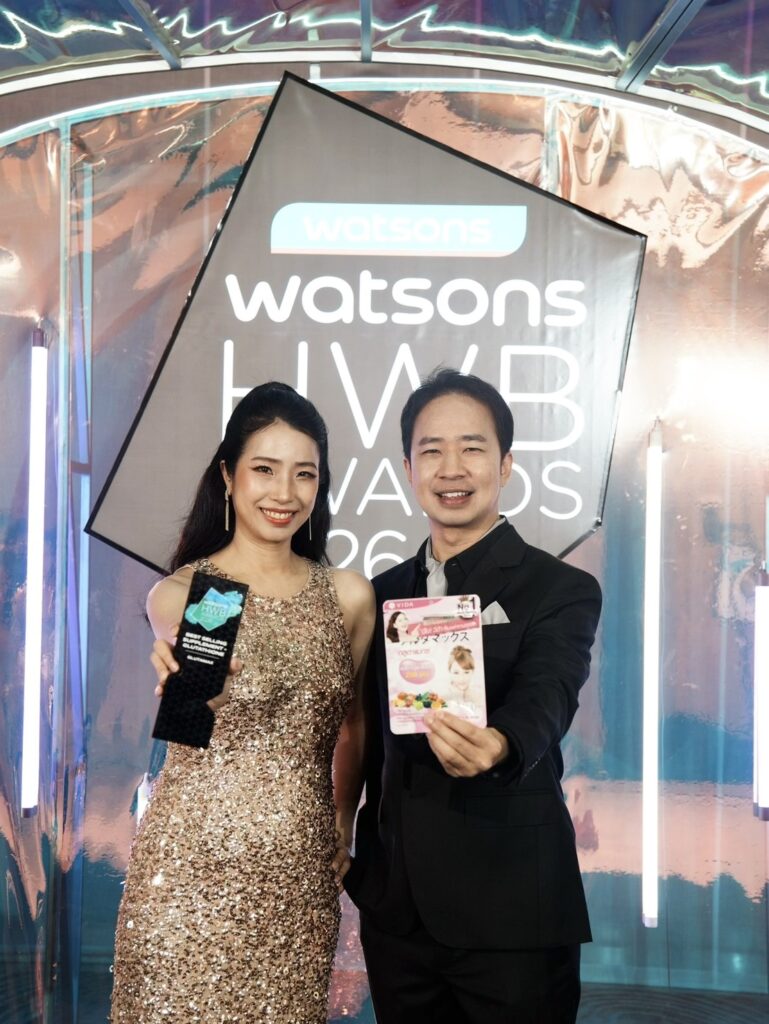 งาน Watsons Health Wellness and Beauty Awards จัดขึ้นเพื่อยกย่องผลิตภัณฑ์ด้านสุขภาพและความงามที่ได้รับความเชื่อมั่นจากผู้บริโภค โดยพิจารณาจาก ยอดขายจริงและเสียงตอบรับจากผู้บริโภค ทั้งในร้าน Watsons และช่องทาง Watsons Online ทำให้รางวัลดังกล่าวถือเป็นหนึ่งในเครื่องยืนยันความสำเร็จของแบรนด์ในตลาดสุขภาพและความงามของไทย ภายในงานได้รับเกียรติจาก คุณนวลพรรณ ชัยนาม Managing Director วัตสัน ประเทศไทย เป็นผู้มอบรางวัล