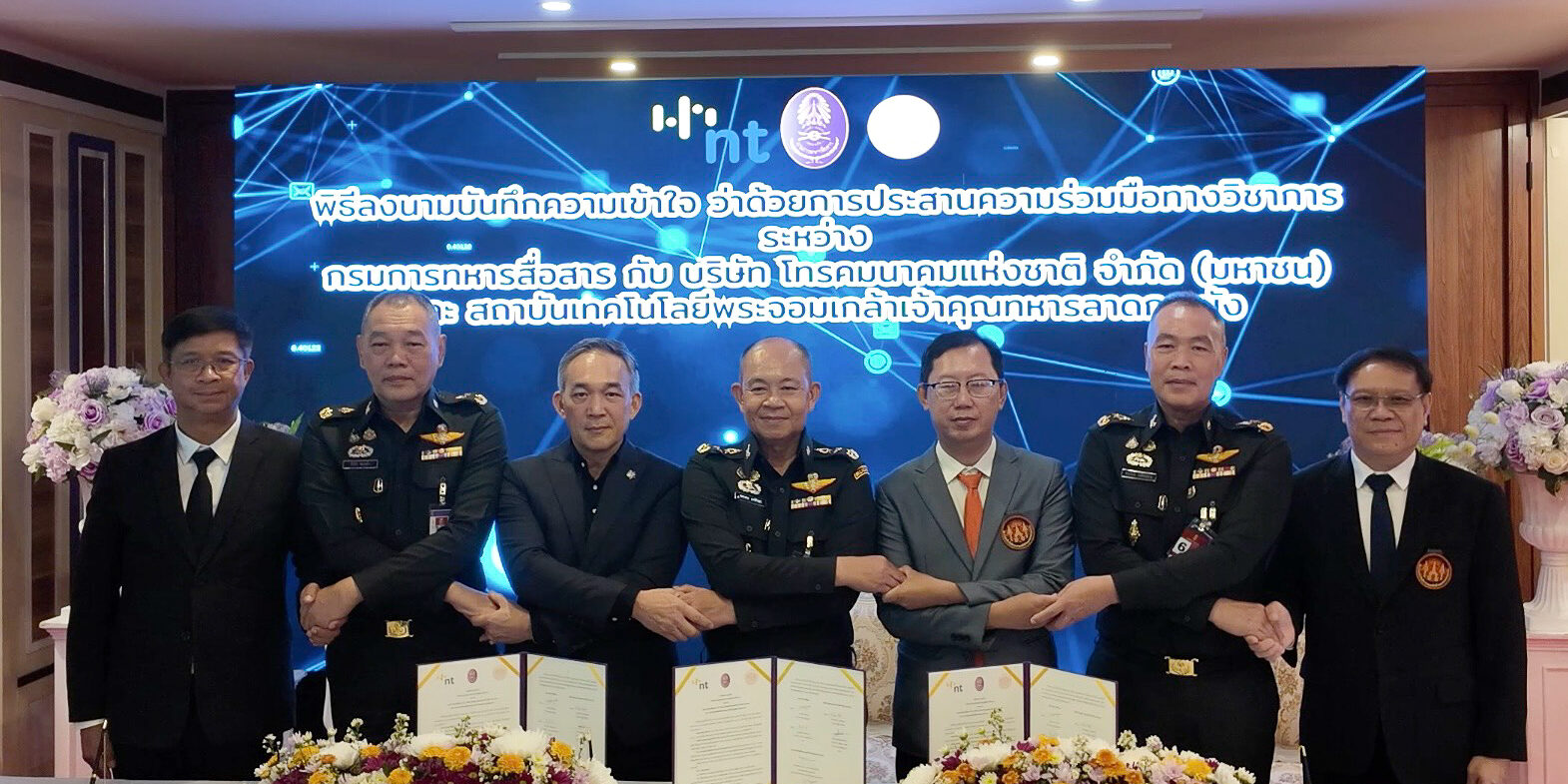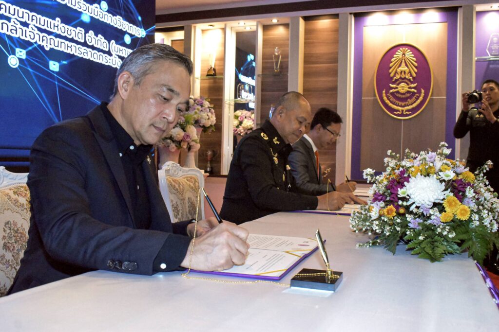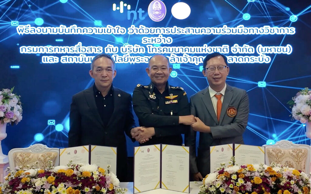 วันที่ 5 มีนาคม 2569 – บริษัท โทรคมนาคมแห่งชาติ จำกัด (มหาชน) หรือ NT ร่วมกับ กรมการทหารสื่อสาร และสถาบันเทคโนโลยีพระจอมเกล้าเจ้าคุณทหารลาดกระบัง (KMITL) ลงนามบันทึกข้อตกลงความร่วมมือทางวิชาการ เพื่อเพิ่มขีดความสามารถด้านการวิจัยและพัฒนาระบบวิเคราะห์ข้อมูลและสั่งการจากอากาศยานไร้คนขับ (UAV) และ CCTV เสริมศักยภาพระบบเฝ้าระวังชายแดน โดยมี พลโท พรเทพ ยังรักษา เจ้ากรมการทหารสื่อสาร ในฐานะหน่วยงานระบบสื่อสารเพื่อความมั่นคงของประเทศ พันเอก สรรพชัยย์ หุวะนันทน์ กรรมการผู้จัดการใหญ่ บริษัท โทรคมนาคมแห่งชาติ จำกัด (มหาชน) หรือ NT ผู้นำด้านโครงสร้างพื้นฐานดิจิทัลของประเทศ และ รองศาสตราจารย์ ดร.สมยศ เกียรติวนิชวิไล คณบดีคณะวิศวกรรมศาสตร์ สถาบันเทคโนโลยีพระจอมเกล้าเจ้าคุณทหารลาดกระบัง