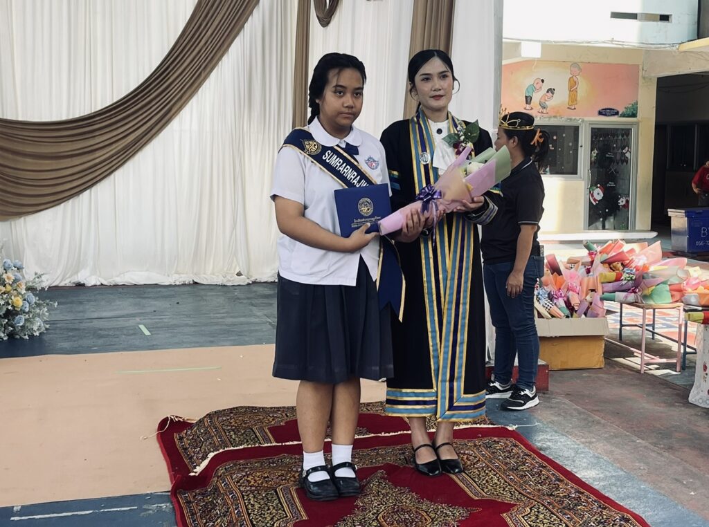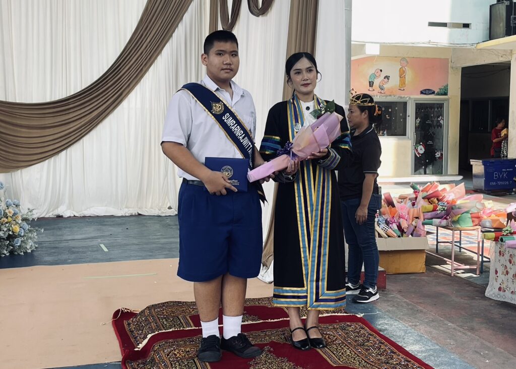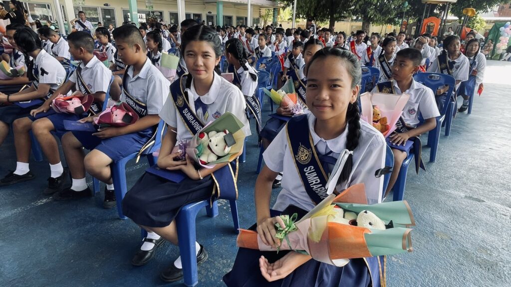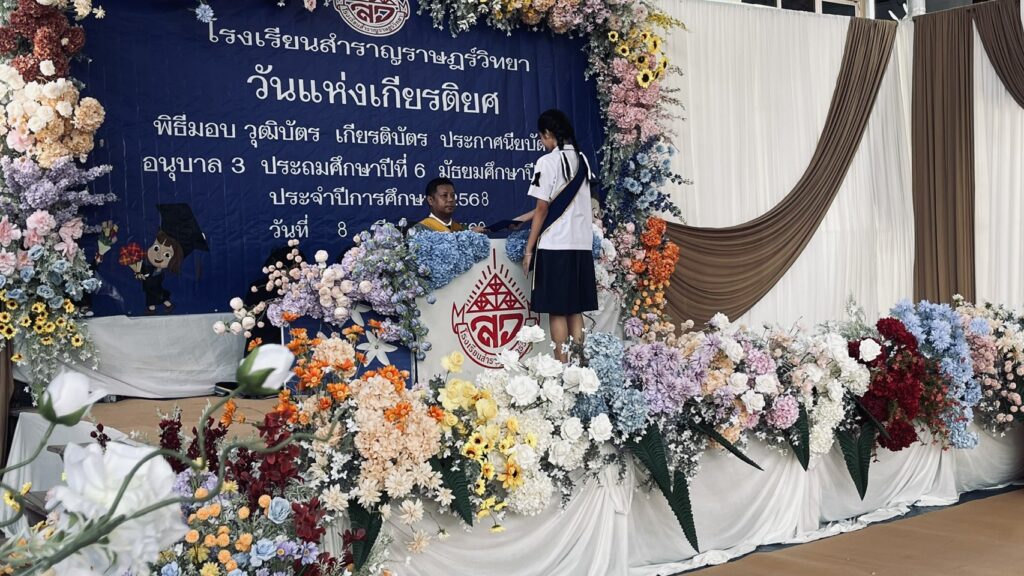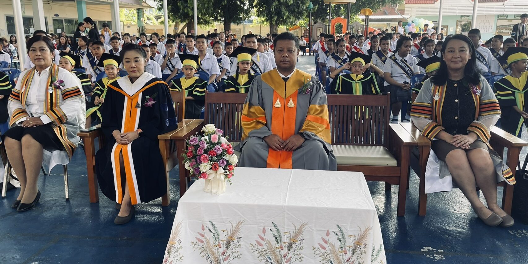 สำหรับปีการศึกษา 2568 มีนักเรียนสำเร็จการศึกษารวมทั้งสิ้น 102 คน ประกอบด้วย ระดับชั้นอนุบาล 3 จำนวน 11 คน ระดับชั้นประถมศึกษาปีที่ 6 จำนวน 50 คน และระดับชั้นมัธยมศึกษาปีที่ 3 จำนวน 41 คน ภายในงานมีการจัดกิจกรรม เริ่มตั้งแต่เวลา 06.30 น. นักเรียนชั้นอนุบาล 3 เข้าจุดเตรียมความพร้อม จากนั้นเวลา 07.00 – 08.00 น. นักเรียนชั้นอนุบาล 3 นักเรียนชั้นประถมศึกษาปีที่ 6 และนักเรียนชั้นมัธยมศึกษาปีที่ 3 ลงทะเบียนรายงานตัว