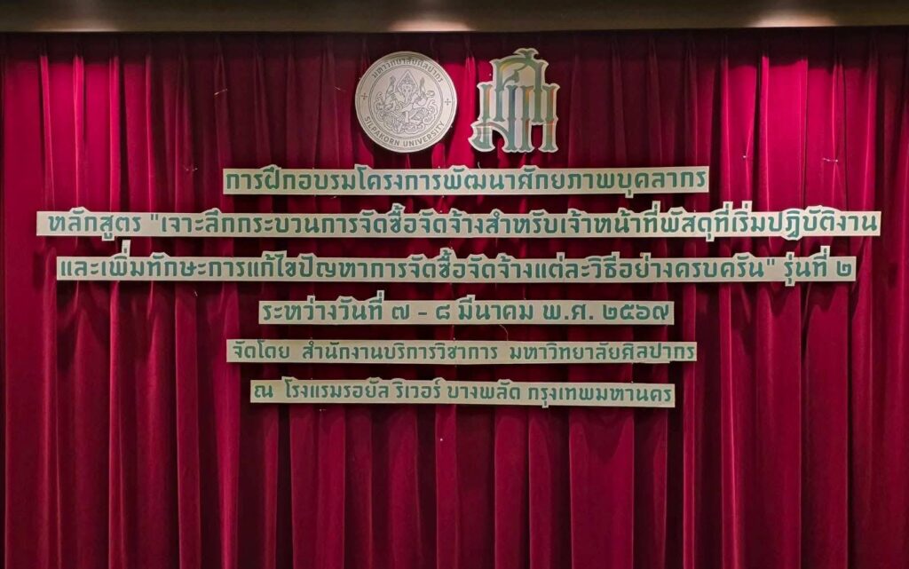 เข้าร่วมอบรมโครงการพัฒนาศักยภาพบุคลากร หลักสูตร “เจาะลึกกระบวนการจัดซื้อจัดจ้างสำหรับเจ้าหน้าที่พัสดุที่เริ่มปฏิบัติงาน และเพิ่มทักษะการแก้ไขปัญหาการจัดซื้อจัดจ้างแต่ละวิธีอย่างครบครัน รุ่นที่ ๒” ระหว่างวันที่ ๗ – ๘ มีนาคม ๒๕๖๙นายสุรพันธ์ เจริญทรัพย์ วัฒนธรรมจังหวัดอุตรดิตถ์ มอบหมายให้ นางสาวกรกนก จันทร นักจัดการงานทั่วไปปฏิบัติการ เข้าร่วมอบรมโครงการพัฒนาศักยภาพบุคลากร ประจำปีงบประมาณ พ.ศ. ๒๕๖๙ หลักสูตร “เจาะลึกกระบวนการจัดซื้อจัดจ้างสำหรับเจ้าหน้าที่พัสดุที่เริ่มปฏิบัติงาน และเพิ่มทักษะการแก้ไขปัญหาการจัดซื้อจัดจ้างแต่ละวิธีอย่างครบครัน รุ่นที่ ๒” ซึ่งจัดโดยสำนักงานบริการวิชาการ มหาวิทยาลัยศิลปากรการอบรมดังกล่าวมีวัตถุประสงค์เพื่อเสริมสร้างความรู้ ความเข้าใจเกี่ยวกับขั้นตอนและกระบวนการจัดซื้อจัดจ้างภาครัฐตามกฎหมายและระเบียบที่เกี่ยวข้อง รวมถึงการจัดทำแผนการจัดซื้อจัดจ้างประจำปี การจัดทำ TOR การกำหนดราคากลาง และการดำเนินการจัดซื้อจัดจ้างในรูปแบบต่าง ๆ อาทิ วิธีคัดเลือก วิธีเฉพาะเจาะจง และวิธีประกวดราคาอิเล็กทรอนิกส์ (e-bidding) ตลอดจนความรู้เกี่ยวกับการทำสัญญา การบริหารสัญญา และบทบาทหน้าที่ของคณะกรรมการตรวจรับพัสดุ เพื่อเพิ่มประสิทธิภาพในการปฏิบัติงานด้านพัสดุของหน่วยงานภาครัฐทั้งนี้ การอบรมจัดขึ้นระหว่างวันที่ ๗ – ๘ มีนาคม ๒๕๖๙ ณ โรงแรมรอยัล ริเวอร์ บางพลัด กรุงเทพมหานคร