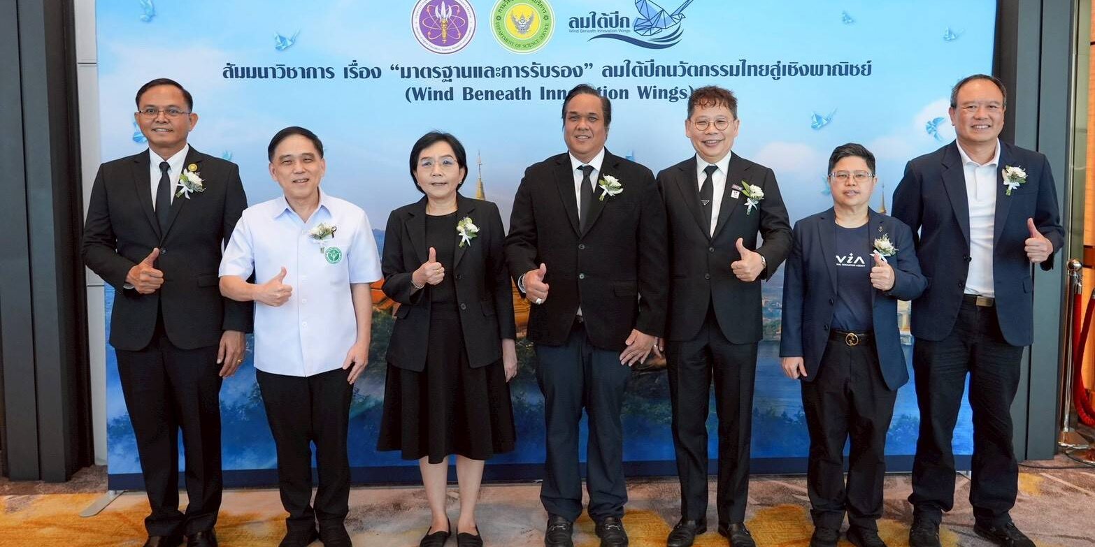 โดยจัดขึ้นภายในงานสัมมนาวิชาการหัวข้อ “มาตรฐานและการรับรอง: ลมใต้ปีกนวัตกรรมไทยสู่เชิงพาณิชย์ (Wind Beneath Innovation Wings)” ณ โรงแรมอีสติน แกรนด์ พญาไท โดยได้รับเกียรติจาก ดร.พันธุ์เพิ่มศักดิ์ อารุณี รองปลัดกระทรวง อว. เป็นประธานและร่วมเป็นสักขีพยาน สะท้อนความมุ่งมั่นของกระทรวง อว. ในการผลักดัน “มาตรฐาน” ให้เป็นกลไกสำคัญเพื่อเพิ่มขีดความสามารถในการแข่งขันของประเทศ ทั้งนี้ มีผู้เข้าร่วมงานกว่า 160 คน จาก 50 หน่วยงานชั้นนำด้านการวิจัย การส่งเสริมนวัตกรรม การกำกับดูแล และการพัฒนามาตรฐาน