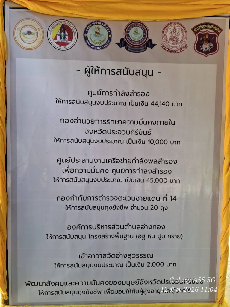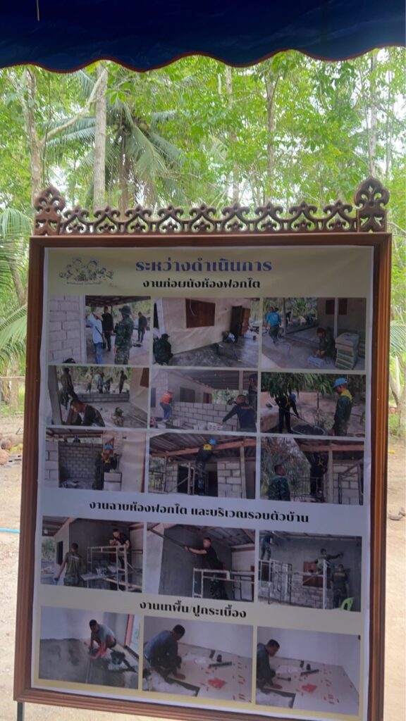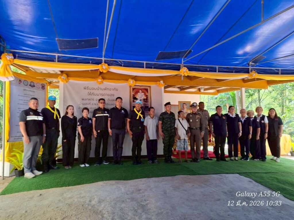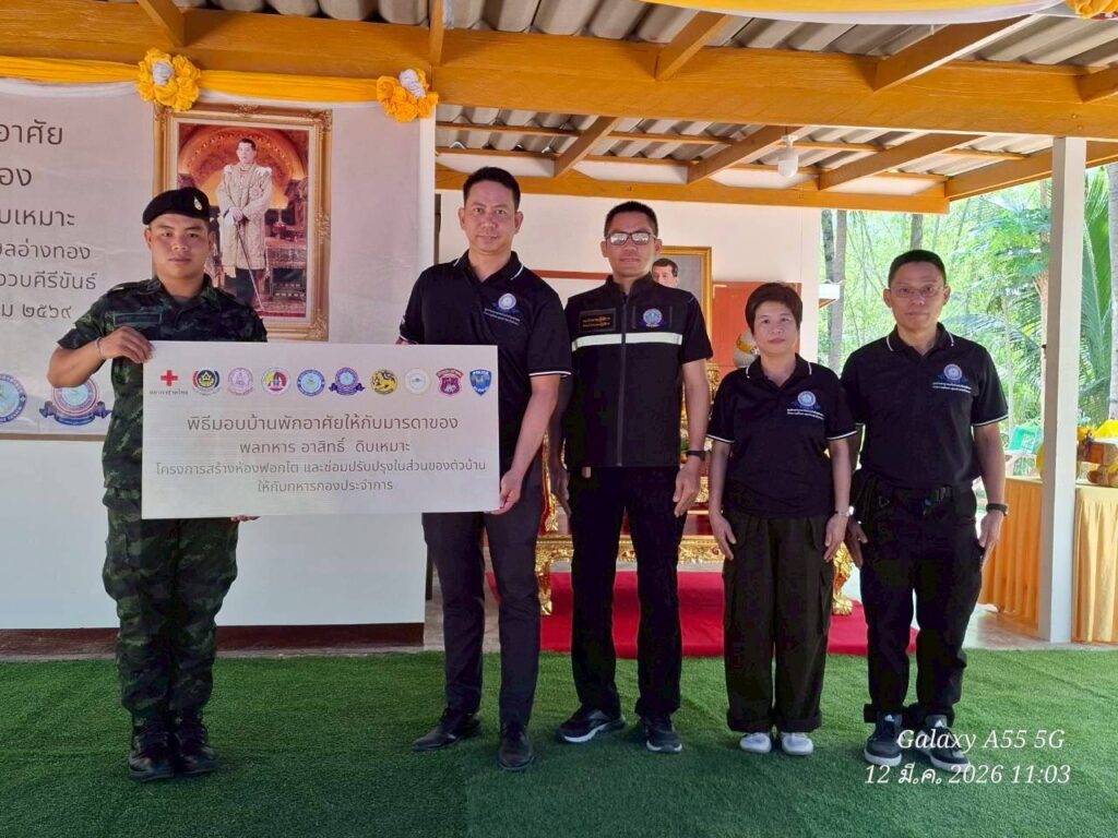 วันที่ ๑๒๑๐๑๕ มี.ค. ๖๙ พล.ต.อินทรา กานุวงษ์ ผบ.ศสร. /ผบ.ศคร.ศสร. เป็นประธานในพิธีมอบบ้านพักอาศัยให้กับมารดาของพลทหาร อาสิทธิ์ ดิบเหมาะ สังกัด ร้อย.บร.กบร.ศสร. ณ บ้านเลขที่ ๙/๒ หมู่ที่ ๖ ต.อ่างทอง อ.ทับสะแก จว.ป.ข. โดยมีคณะผู้บังคับบัญชา ศสร., ศคร.ศสร., พี่เจ้าอาวาสวัดอ่างสุวรรณ, ทั้งนี้ ว่าที่พันตรี กิติเฉลิม โครงกาพย์ หัวหน้าฝ่ายกิจการกำลังพลสำรอง ศคร.ศสร.มอบหมายให้ ว่าที่พันตรี ชนินทร์ ศรีแก้ว รก.รองหัวหน้าฝ่ายฯ นำผู้บริหารฝ่ายกิจการกำลังพลสำรองฯ ร่วมพิธีโดย ศคร.ศสร. สนับสนุนงบประมาณ 45,000 บาทและน้ำดื่มสะอาด จำนวน ๗๐๐ ขวด และมีผู้แทนจากหน่วยงานต่าง ๆ อาทิ อ.ทับสะแก, ตชด.๑๔, อบต.อ่างทอง, พม.จว.ป.ข., พช.จว.ป.ข., เหล่ากาชาด จว.ป.ข., สภ.ทับสะแก และส่วนราชการในพื้นที่เข้าร่วมกิจกรรมดังกล่าว พร้อมมอบถุงยังชีพให้กับผู้สูงอายุและผู้ที่มีรายได้น้อยในพื้นที่ จำนวน ๒๐ คน สำหรับการมอบบ้านพักอาศัยในครั้งนี้เป็นการสร้างห้องสำหรับฟอกไตด้วยตนเอง จำนวน ๑ ห้อง มีการปรับปรุงบ้านพักอาศัยให้มีสภาพที่สมบูรณ์แข็งแรงยิ่งขึ้น ผลการปฏิบัติเป็นไปด้วยความเรียบร้อย