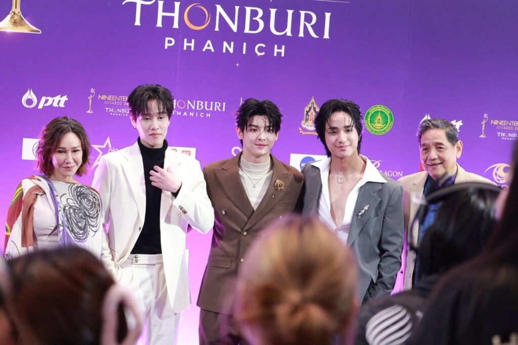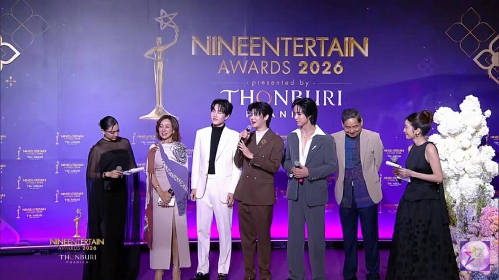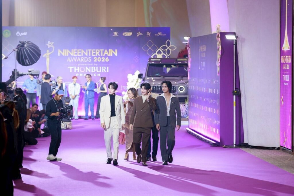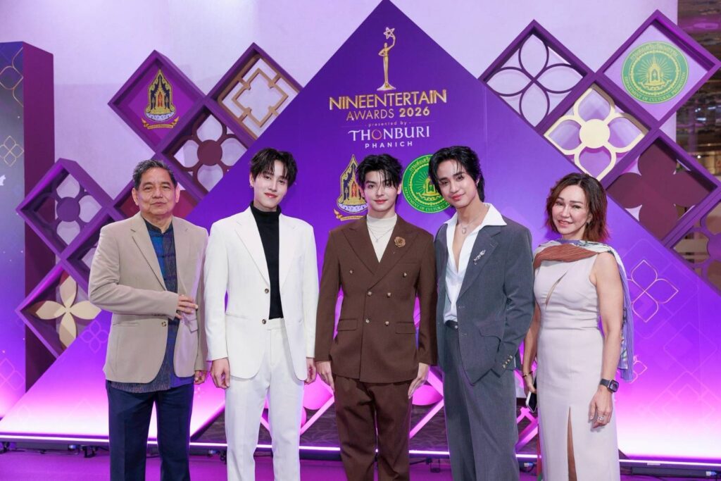 เปิดตัวบน “พรมม่วงเกียรติยศ” ในงาน Nineentertainawards2026 ได้อย่างสง่างาม สำหรับค่ายน้องใหม่ “หนุนนำสตูดิโอ้” นำทีมโดยผู้จัดฯ ป้ายแดง ดี้-ปัทมา ปานทอง ที่มาพร้อมผู้กำกับฯ ข้างกาย เอ๋-กษมา นิสสัยพันธุ์ พร้อมด้วย 3 หนุ่มหล่อใสกิ๊กจากซีรีส์วายเรื่อง “แฟ้มรักต้องห้าม” ได้แก่ นัตเตอร์-ธนภูมิ ชุมพล (@thanapoom_ter), เมฆ-ธนาวิน หาญพานิช (@mek.thanawin), ไทเกอร์ -ภัทรพล ภิญโญธีรโชติ (@tigerphattarapon) เฉิดฉายบนพรมม่วงเรียกเสียงกรี๊ดจากบรรดาแฟนคลับได้อย่างดี