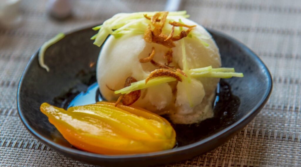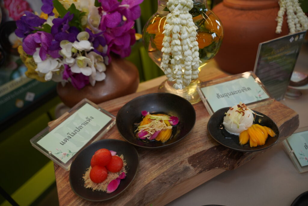 ปิดท้ายสำรับด้วยของหวานฤดูร้อน “ส้มฉุนมะยงชิด” ที่ใช้มะยงชิดสดใหม่จากจังหวัดนครนายก โรยด้วยหอมเจียวและขิงอ่อนซอย เพิ่มมิติรสชาติหวานอมเปรี้ยว สดชื่น เหมาะสำหรับฤดูร้อน