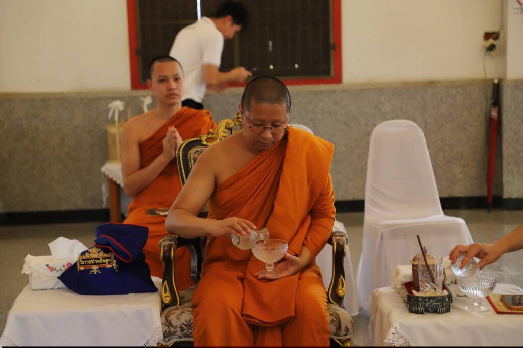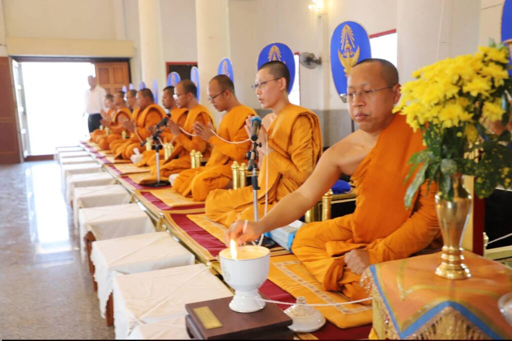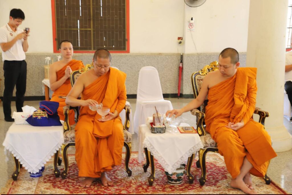 พิธีเริ่มด้วยประธานในพิธีจุดธูปเทียนบูชาพระรัตนตรัย ถวายสักการะแด่พระราชวชิรธรรมเมธี ผู้ช่วยเจ้าอาวสและเลขานุการวัดราชประดิษฐสถิตมหาสีมาราม ประธานฝ่ายสงฆ์ เพื่อให้ศีล จากนั้นจุดเครื่องทองน้อยบูชาเทพารักษ์ผู้รักษาอาราม และประกอบพิธีทอดผ้าไตรบังสุกุล จำนวน ๑๐ ไตร โดยมีพระสงฆ์ ๑๐ รูป พิจารณาผ้าไตรบังสุกุล