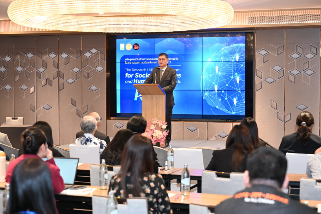 โดยระบุว่า “ประเทศไทยกำลังอยู่ในจุดที่ต้องเข้าใจตนเองและเข้าใจโลกไปพร้อมกัน เรามีความหลากหลายทางวัฒนธรรม มีภูมิปัญญาท้องถิ่นที่ลึกซึ้ง และมีทุนทางสังคมที่ทรงคุณค่า ทว่าการจะนำทุนเหล่านี้มาใช้ให้เกิดประโยชน์ได้อย่างแท้จริงนั้น จำเป็นต้องอาศัยนักวิจัยที่เข้าใจทั้งทฤษฎีและสภาพความเป็นจริง สามารถทำงานบูรณาการร่วมกับชุมชน หน่วยงานภาครัฐ ภาคเอกชน และองค์กรด้านมนุษยธรรมได้ และที่สำคัญที่สุดคือ ต้องสามารถสื่อสารองค์ความรู้เหล่านั้นให้ผู้กำหนดนโยบายและสาธารณชนเข้าใจ ตลอดจนนำไปปฏิบัติได้จริง ผมขอแสดงความยินดีกับผู้เข้าอบรมทุกท่านที่ได้รับการคัดเลือกเข้าร่วมหลักสูตรนี้ ท่านคือกำลังสำคัญของชาติทั้งในมิติขององค์ความรู้และความรับผิดชอบต่อสังคม ผมหวังเป็นอย่างยิ่งว่าเวลา 3 วันหลังจากนี้ จะเป็นจุดเริ่มต้นของการสร้างสรรค์งานวิจัยและเครือข่ายความร่วมมือ ที่ไม่เพียงแต่ตอบโจทย์ทางวิชาการ แต่ยังสามารถตอบสนองความต้องการของสังคมไทย โดยเฉพาะอย่างยิ่งการเป็นที่พึ่งพิงให้แก่กลุ่มคนเปราะบางได้อย่างแท้จริง”